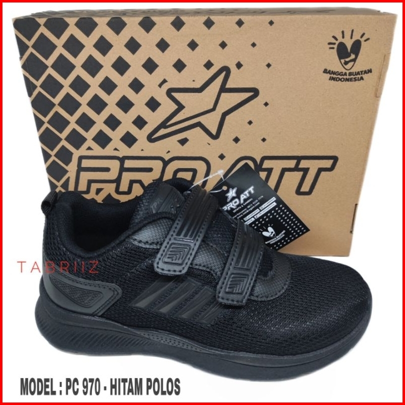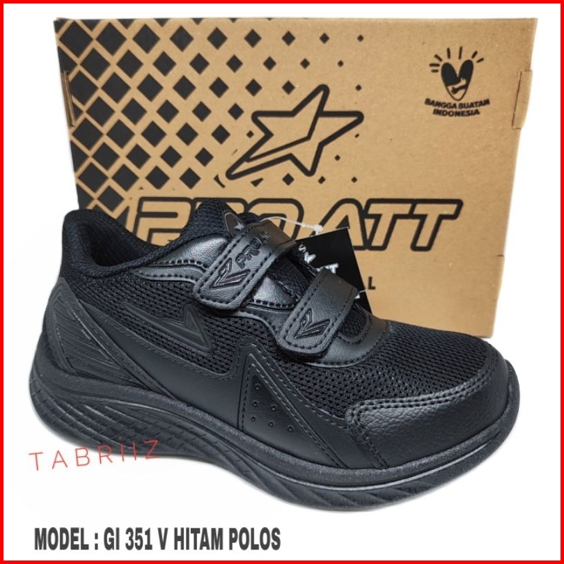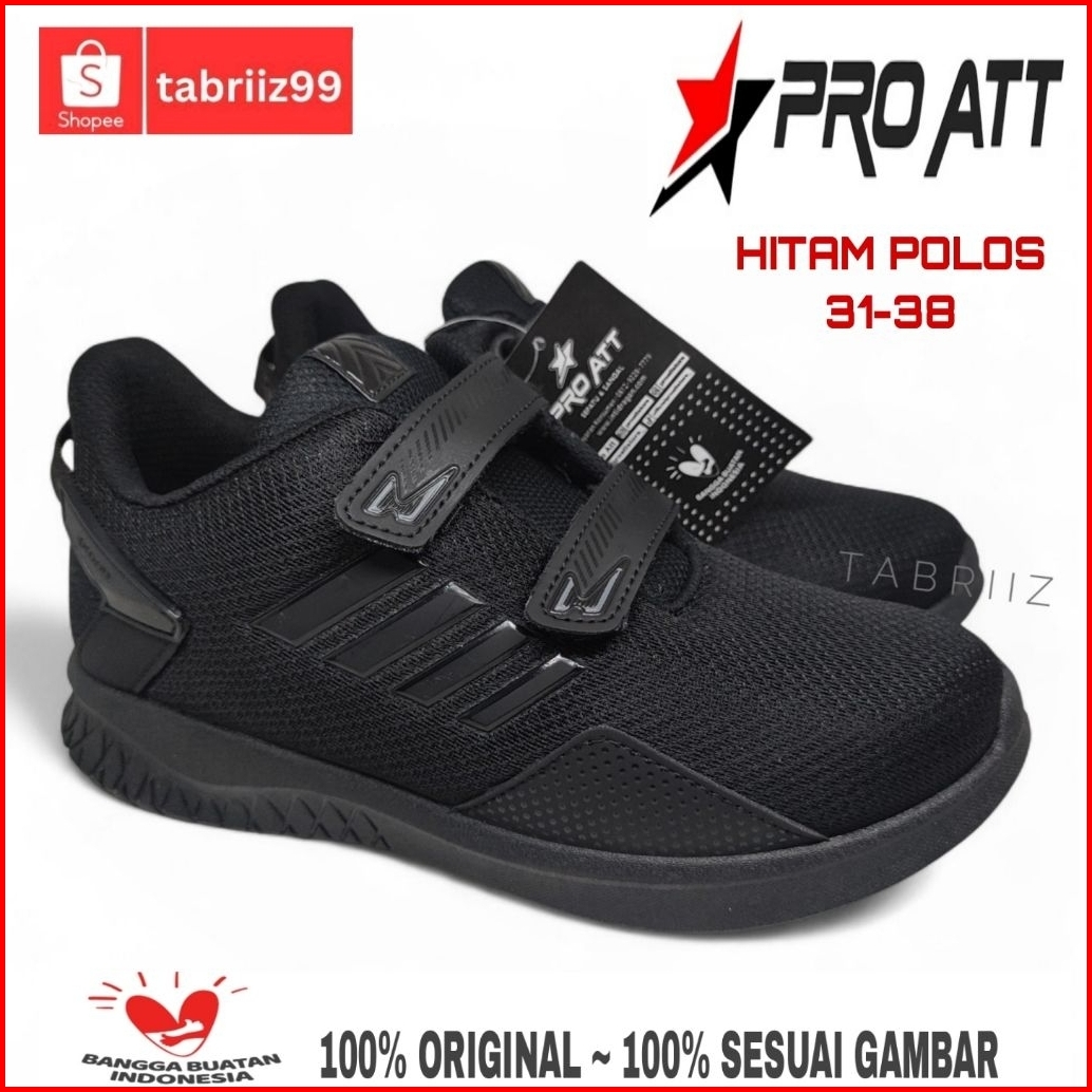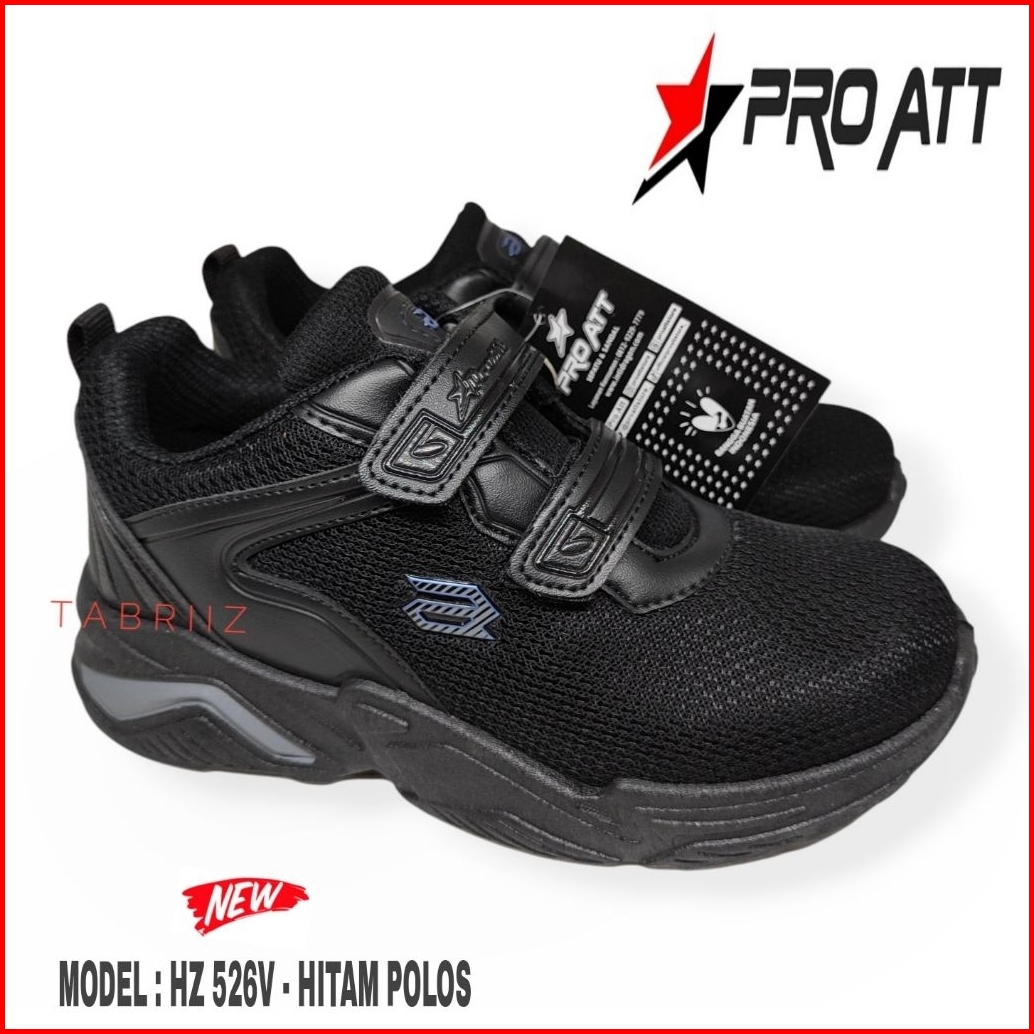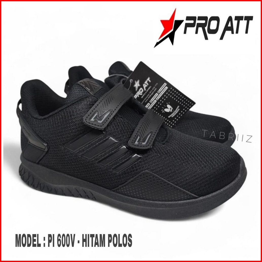 Sepatu Anak Pro Att Hitam Polos Perekat Sepatu Sekolah Sd Tk Anak Cowok Cewek Terbaru - 100 Original