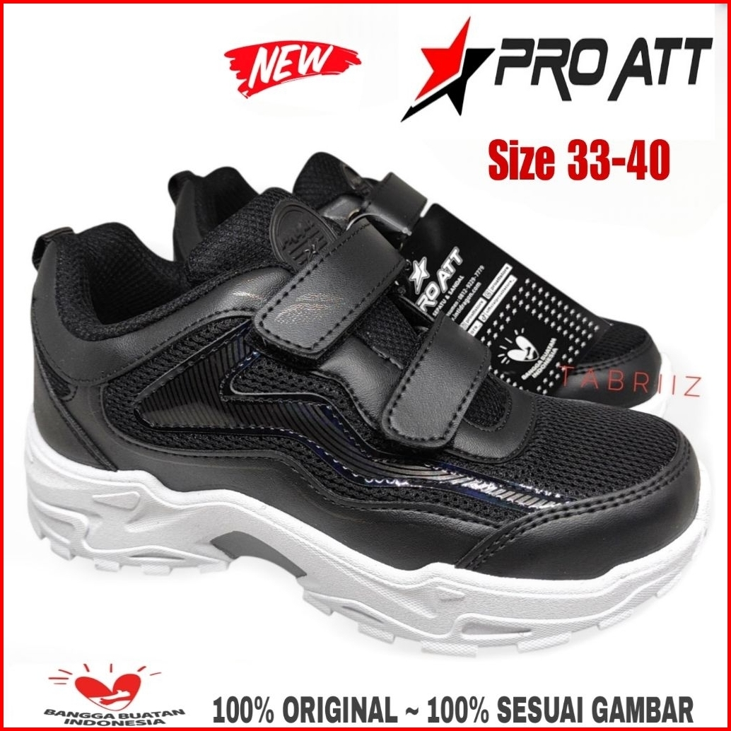 Baru Sepatu Anak Sekolah Pro Att Size 33-40 Perekat Sepatu Anak Sd Smp Hitam - 100 Original