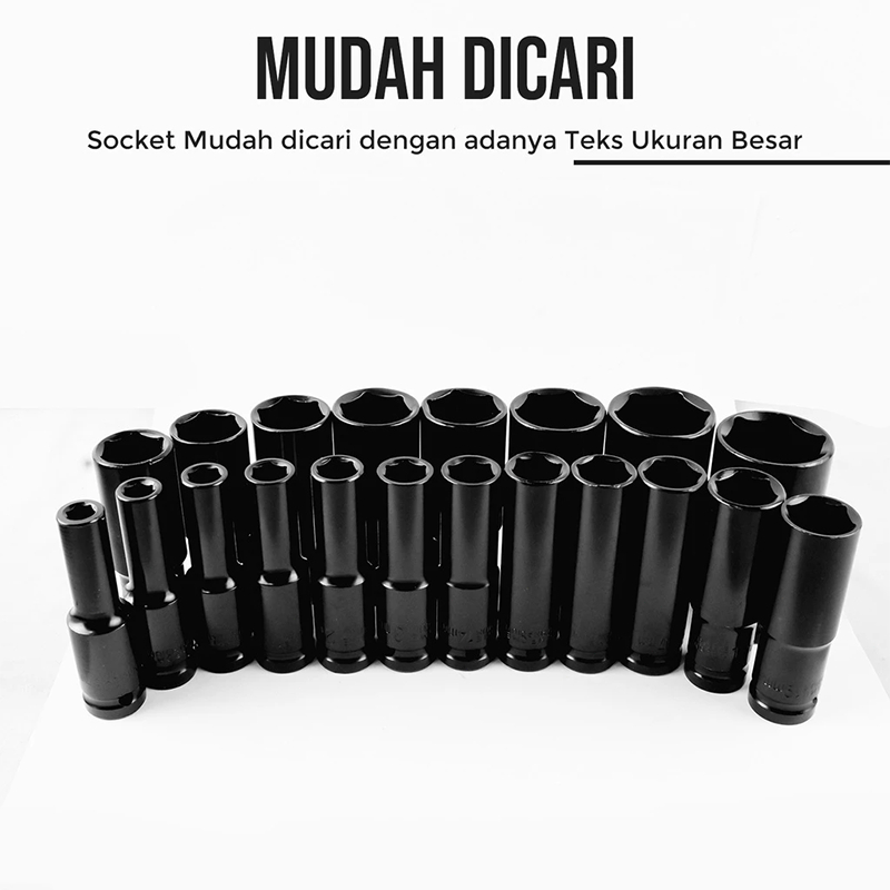 Reaim 20PCS Impact Wrench Socket 1/2 Inch 8-32MM Mata Sok Panjang Deep Socket 20PCS Panjang Mencapai Soket Nut Perbaikan Alat Impact