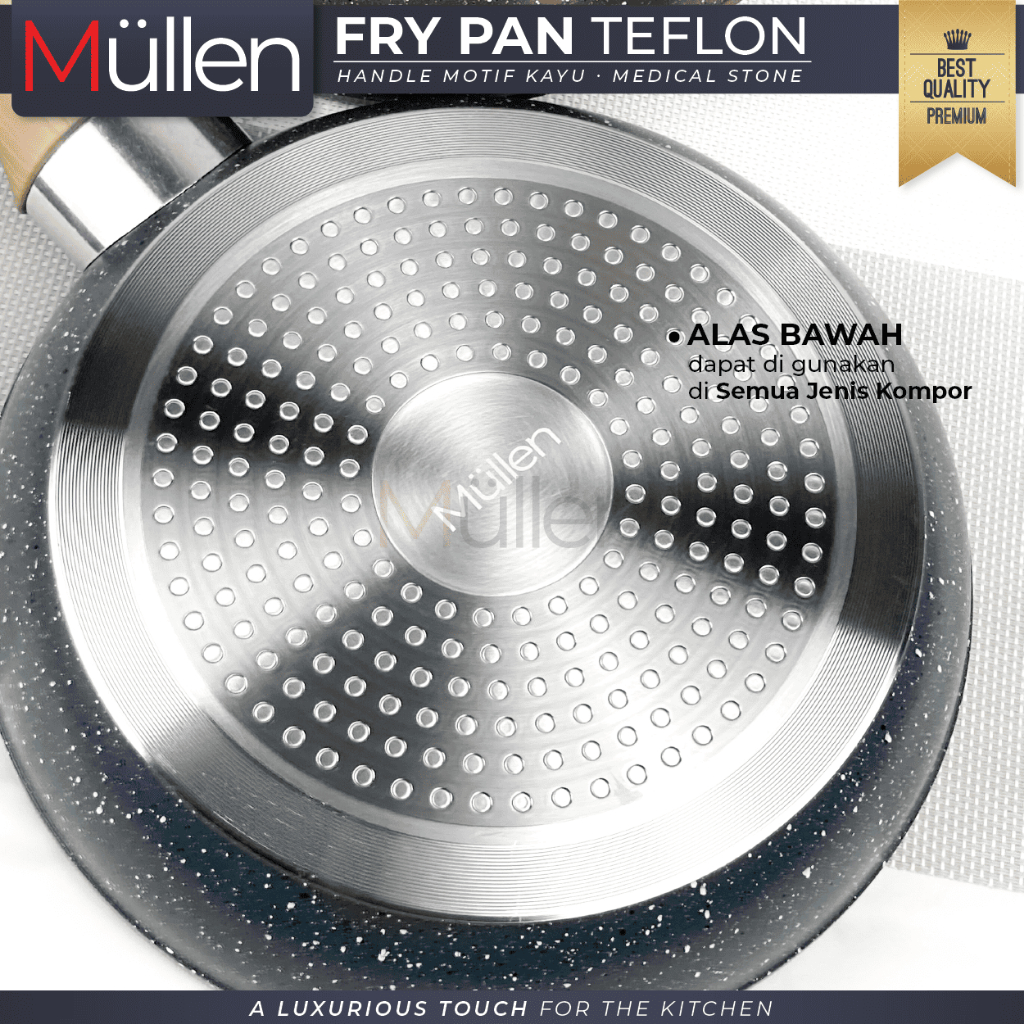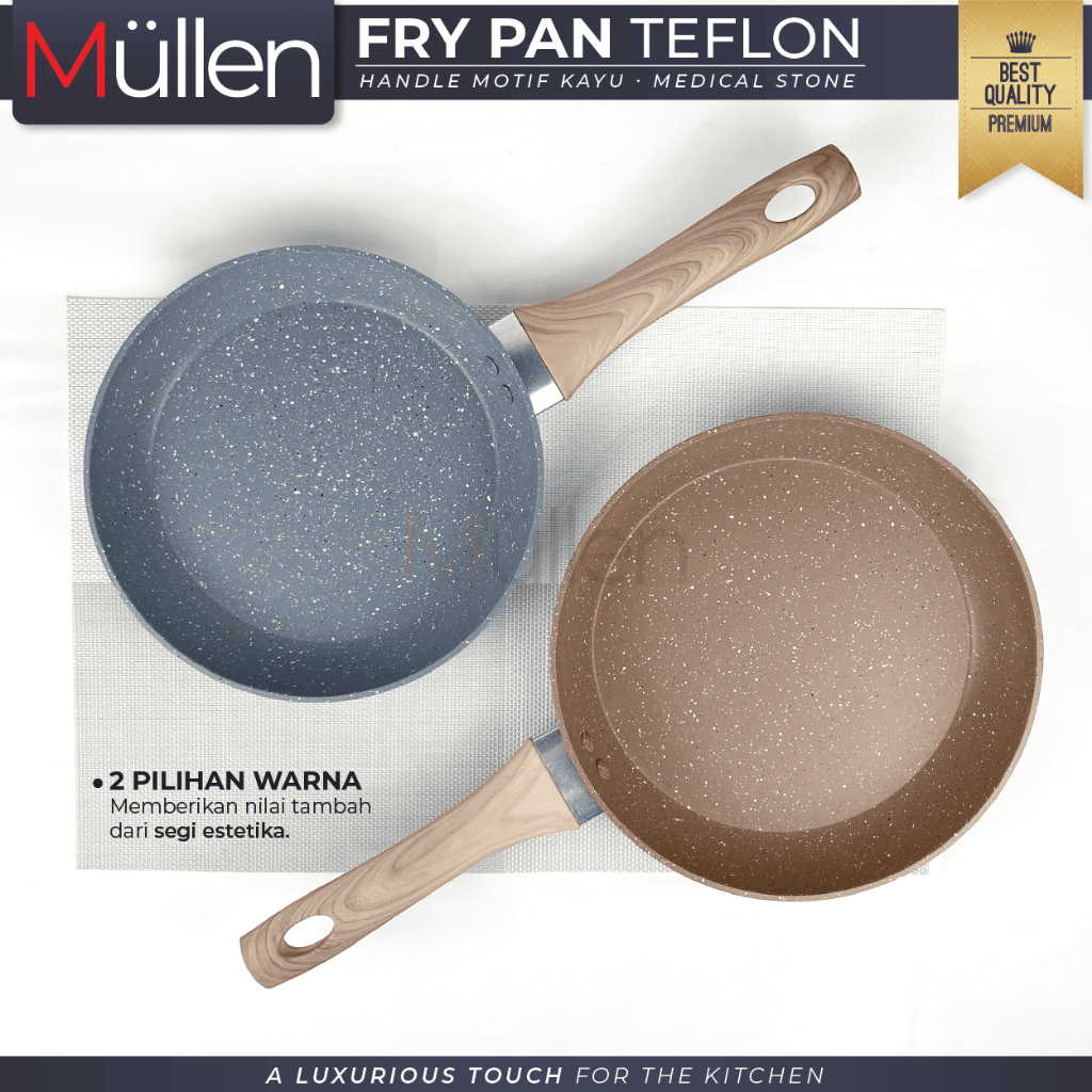 Mullen Fry Pan Marble Wajan Penggorengan Anti Lengket Kitchenware Double Bottom Gagang Premium Ukuran 20/22/24/26 CM