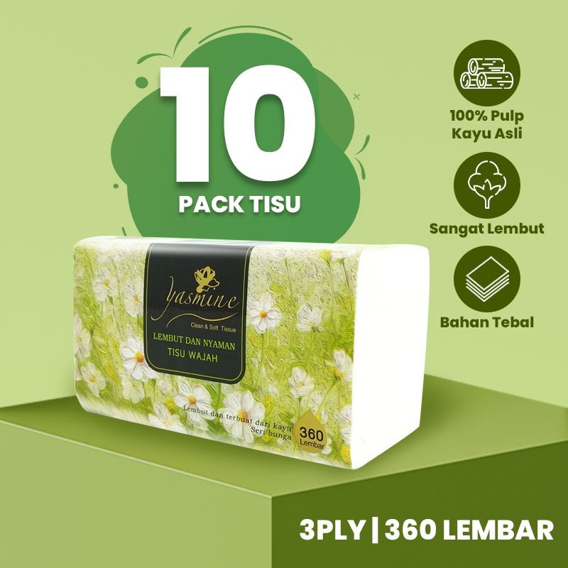 Yasmine 10 PACK 360 helai 3 ply harga promo murah tisu kering murah promo tissue murah facial tissue tisu dapur