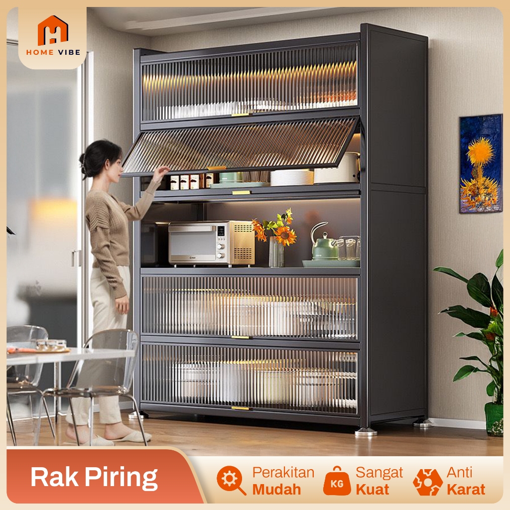 Rak Dapur Dengan Pintu Tertutup Full Besi Lemari Rak Piring Susun Rak Oven Microwave Minimalis