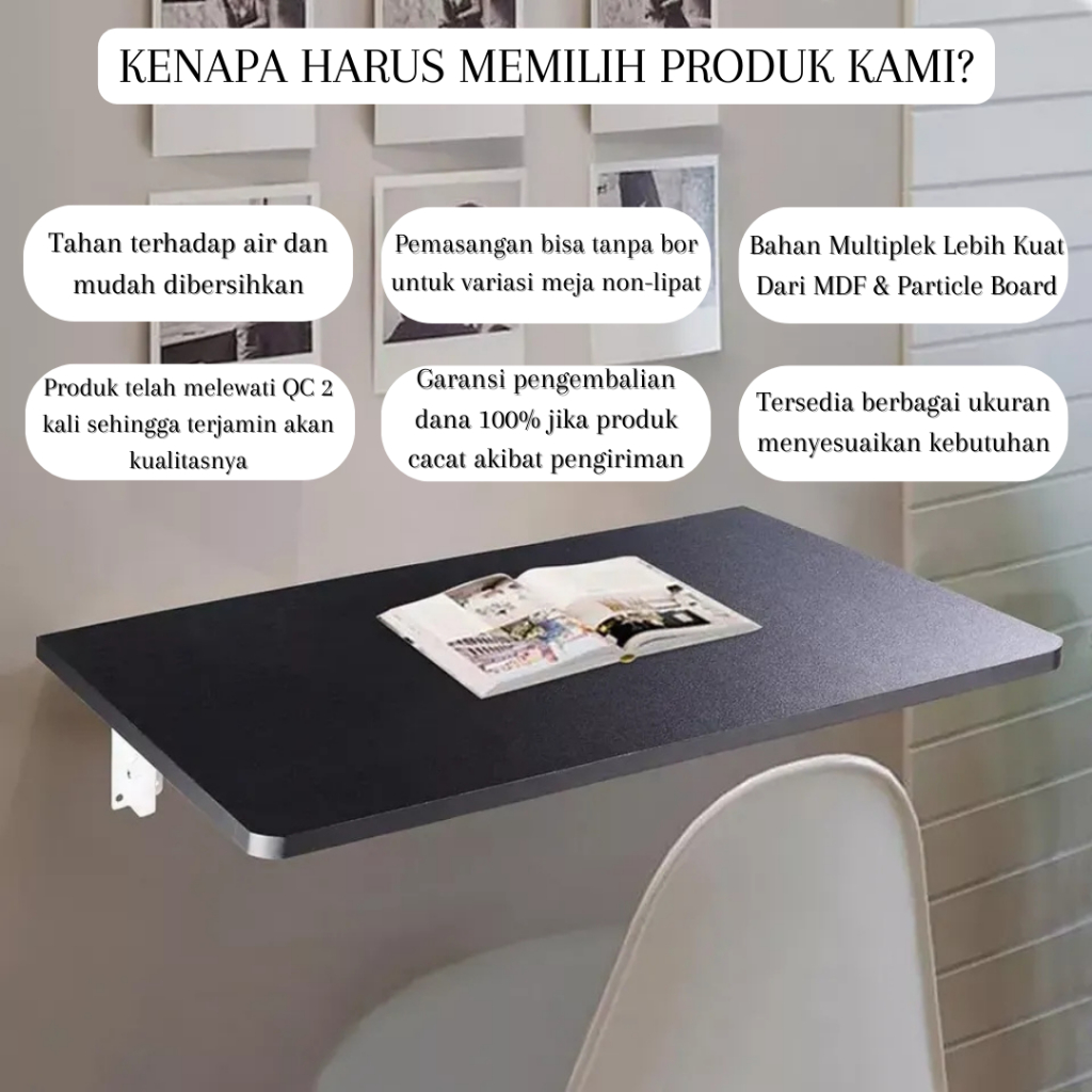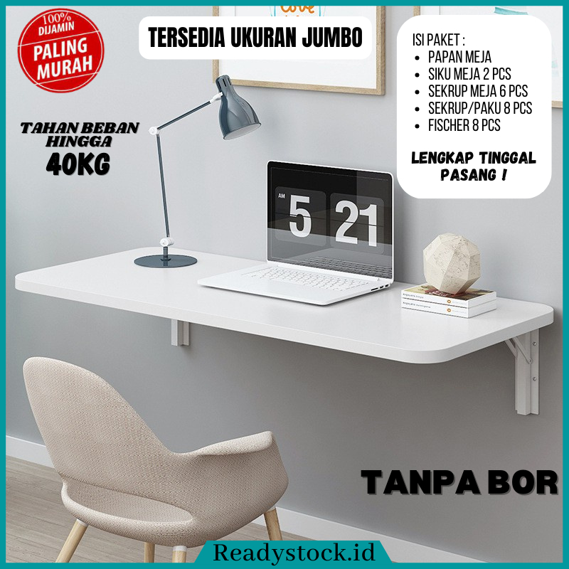 stock id Meja Lipat Dinding Tanpa Bor Minimalis Serbaguna Ukuran 120x40 100x40 80x60 80x50 80x40 60x40 60x30 60x20 Warna Hitam Putih