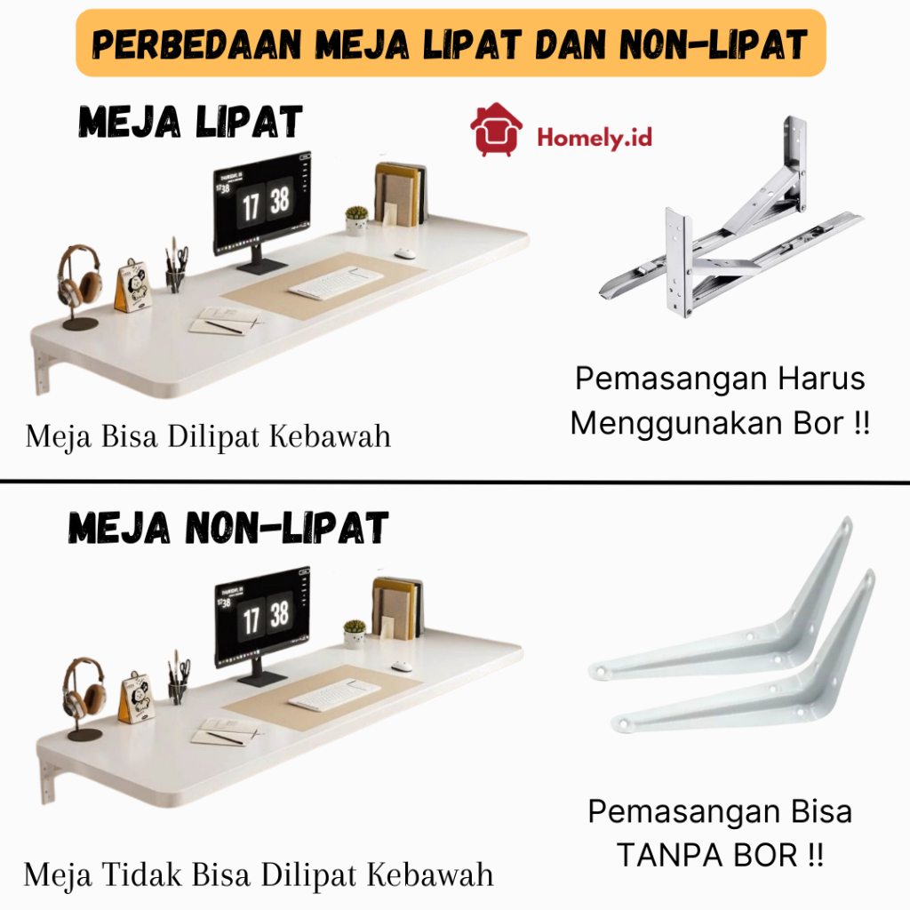 Homely id Meja Lipat Dinding Tanpa Bor Minimalis Serbaguna 120x60 120x40 100x50 100x40 80x50
