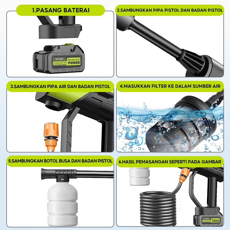 ZPER Alat Cuci Motor Dan Mobil Semprotan Kencang Tekanan Tinggi Portable Pompa Alat Pencuci Motor Semprot Cuci Mobil Semprotan Alat