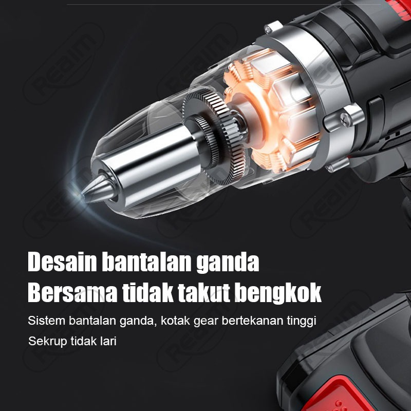 REAIM Mesin Bor Baterai 2IN1 399V Bor Impact & Screwdriver Cordless Ringan untuk Rumah DIY Projects