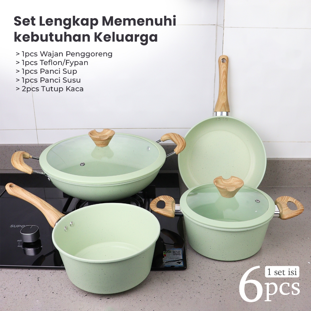 [FREE PIRING] Panci Wajan Set 6 Pcs Anti Lengket - Panci Wajan Serbaguna Estetik
