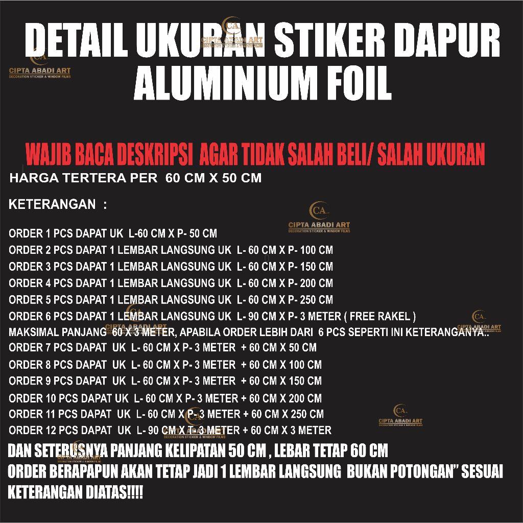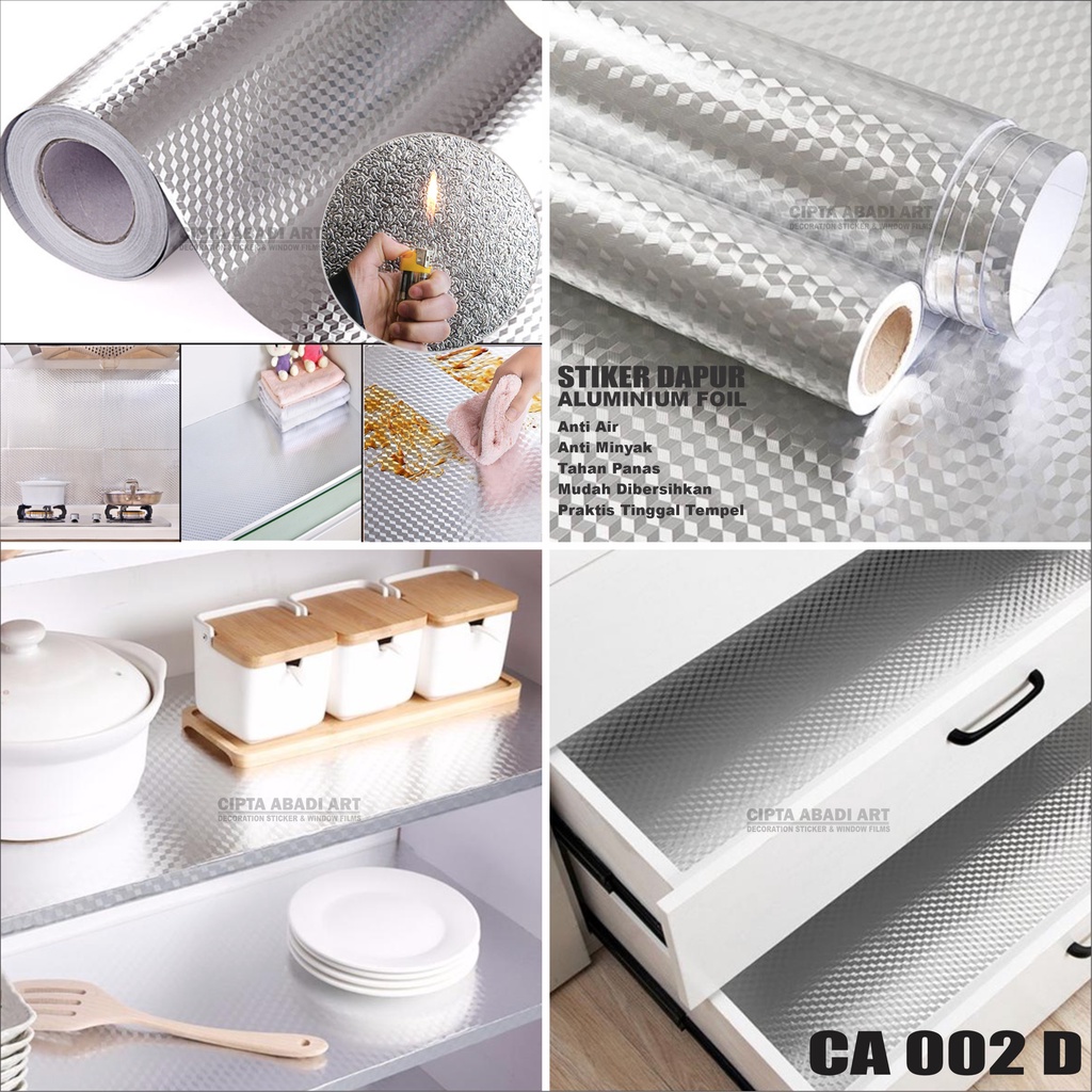 Wallpaper Stiker Dapur Meja Lemari Anti Minyak & Anti 4ppi Aluminium Foil Lebar 60 Cm