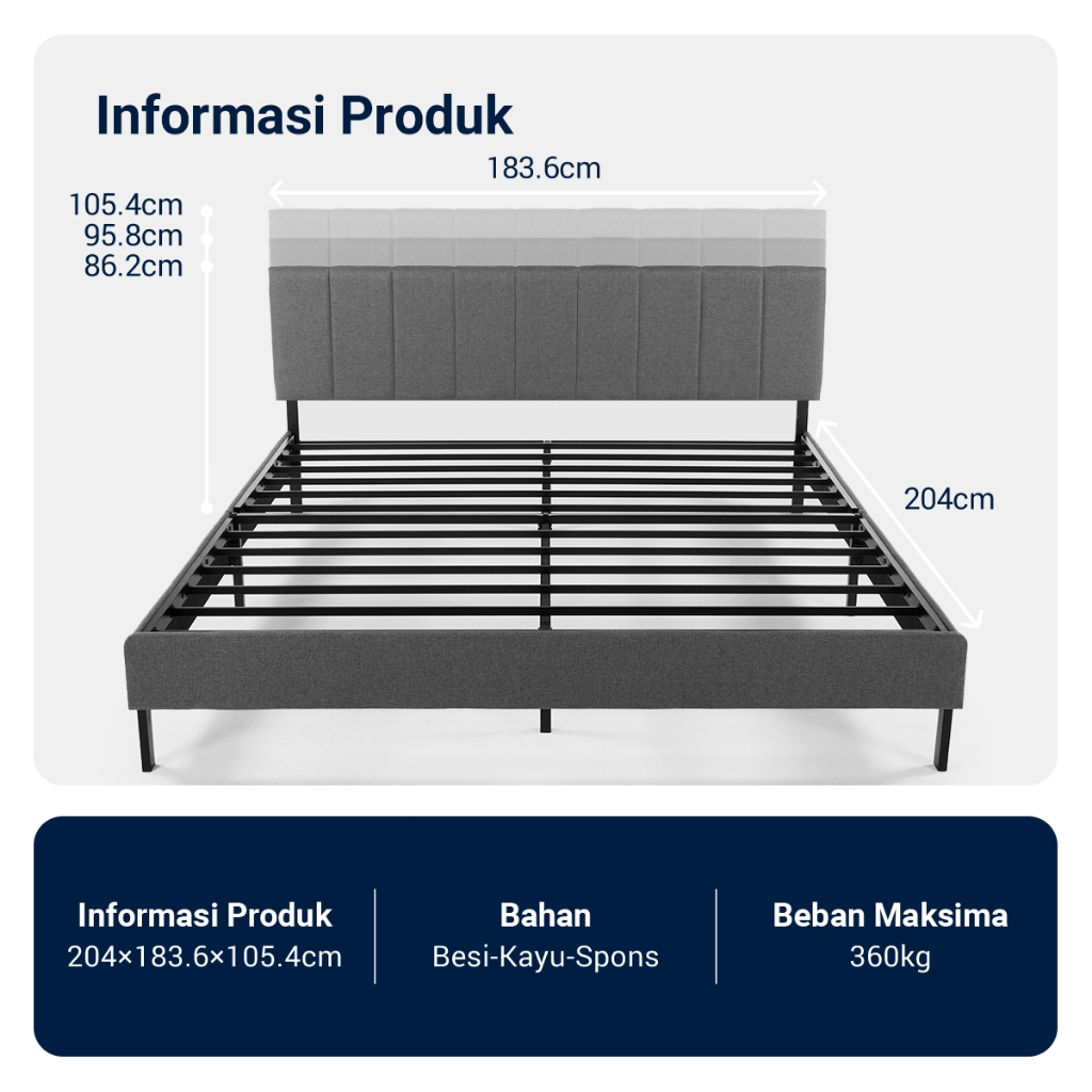 Avenco Classicbed Series Rangka Tempat Tidur Adjustable Headrest Maya Divan Kasur Spons Sandaran Kepala