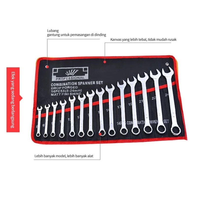 Kunci Ring Pas Set 14pcs Bison Pas 8-24mm Ring set Spanner set Kuat Anti Karat Alat Perkakas combination Wrench Tool Superman Kunci Ring Pas Full Set Lengkap