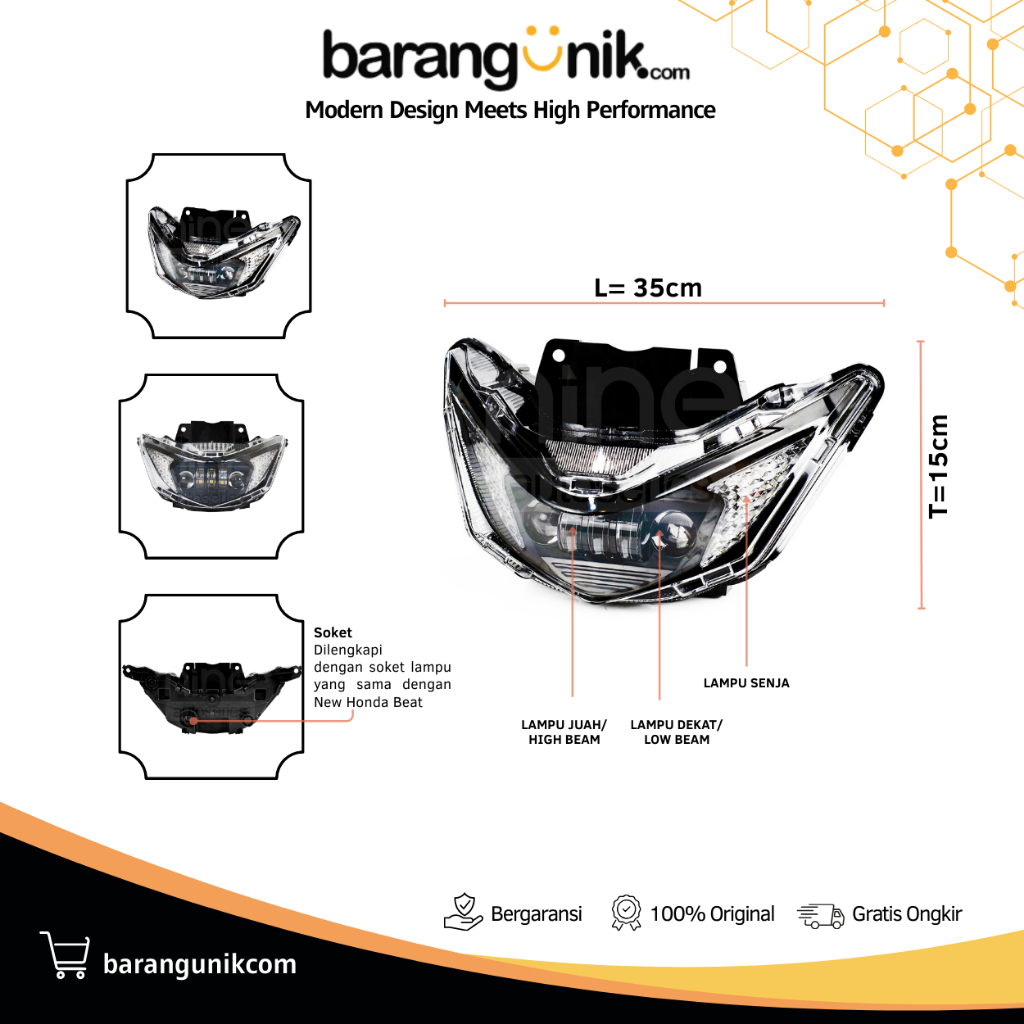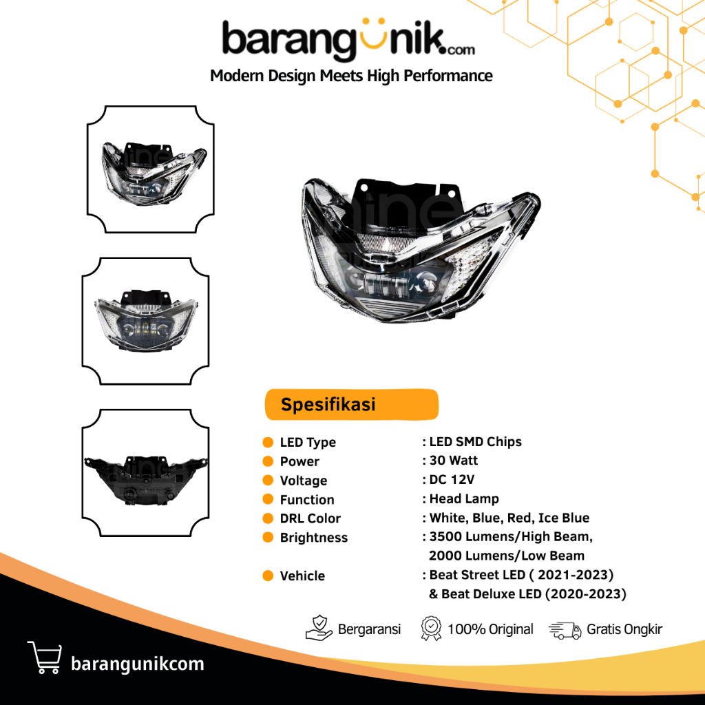 Lampu Utama 30W Headlamp Beat Deluxe Street 2020-2023 Super Terang Anti Air PNP DHB-01 LUXIMOS