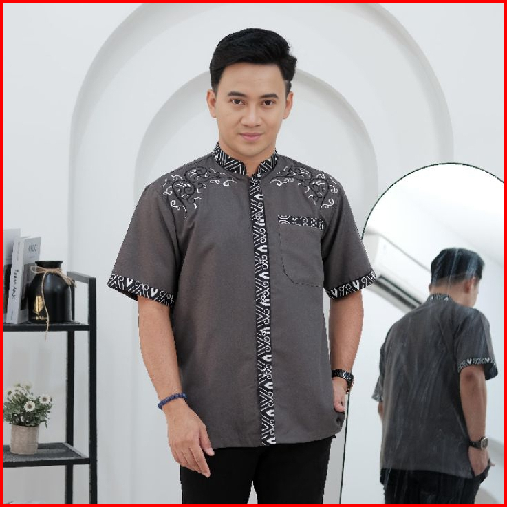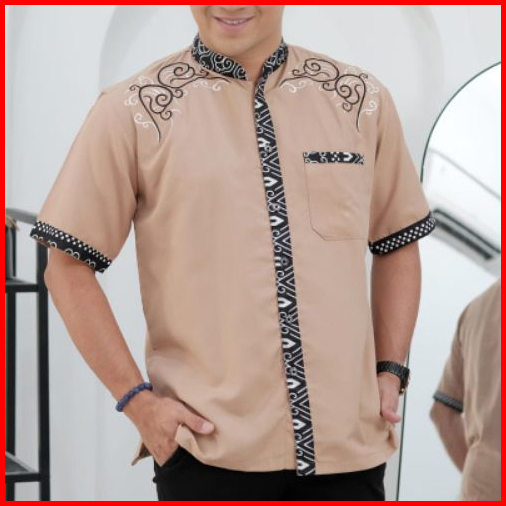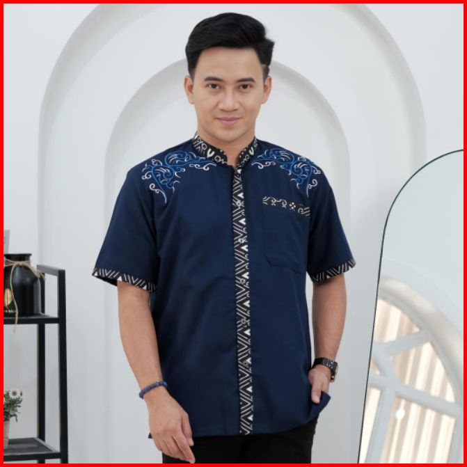 Baju Koko Pendek Terbaru Kombinasi Batik Dan Bordil M L Xl Xxl