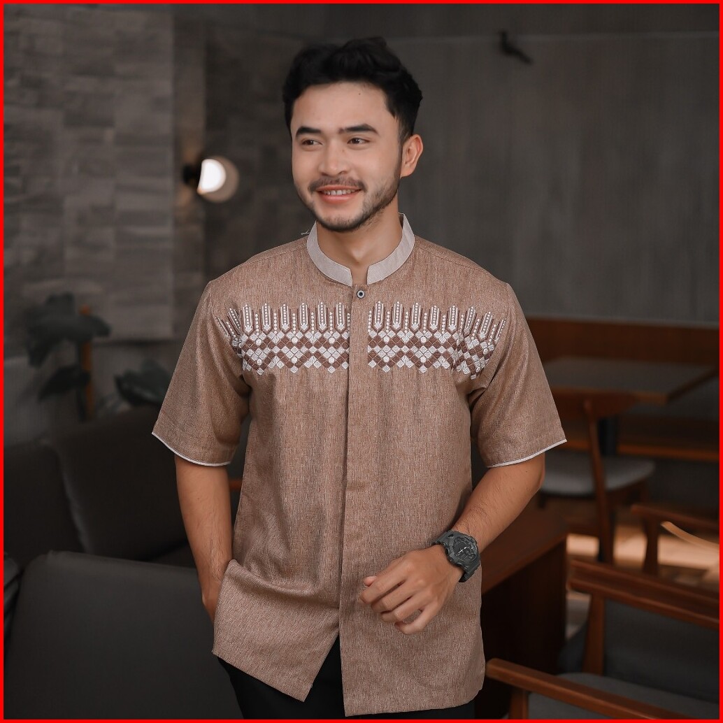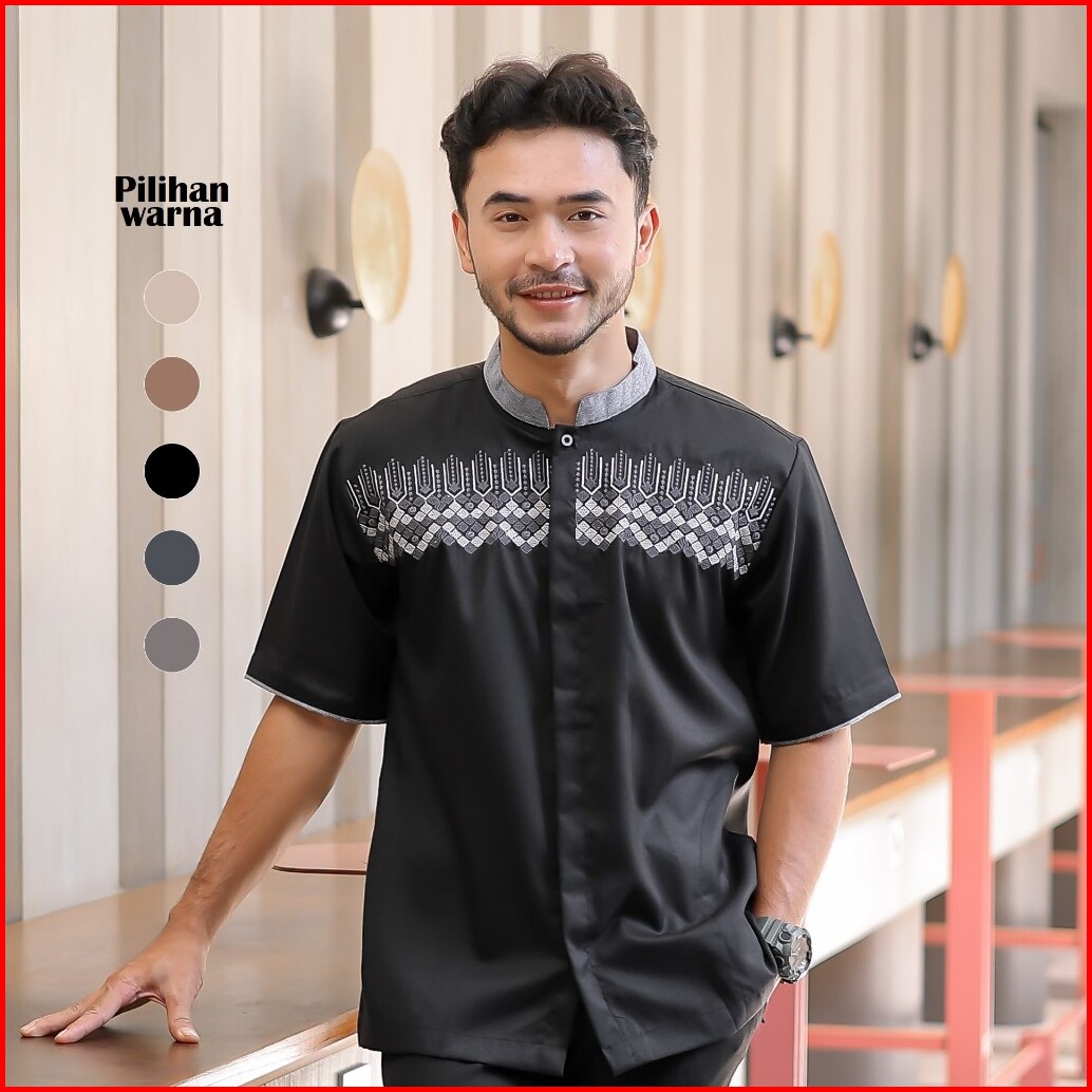 Baju Muslim Koko Pria Dewasa Lengan Pendek Katun Madina Premium Warna Algisty Ag017