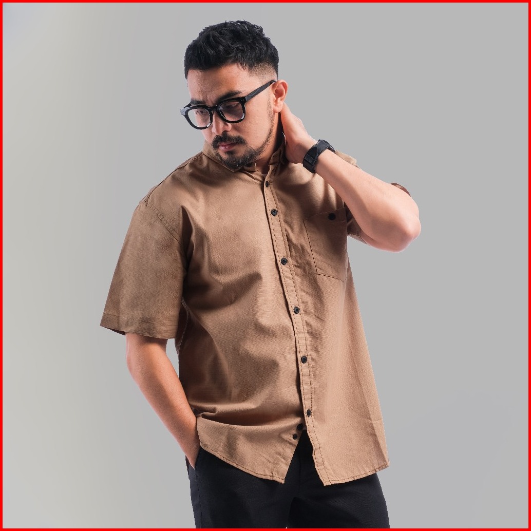 Dgm Kemeja Polos Pria Lengan Pendek Kemeja Pria Coklat Susu Kemeja 1994