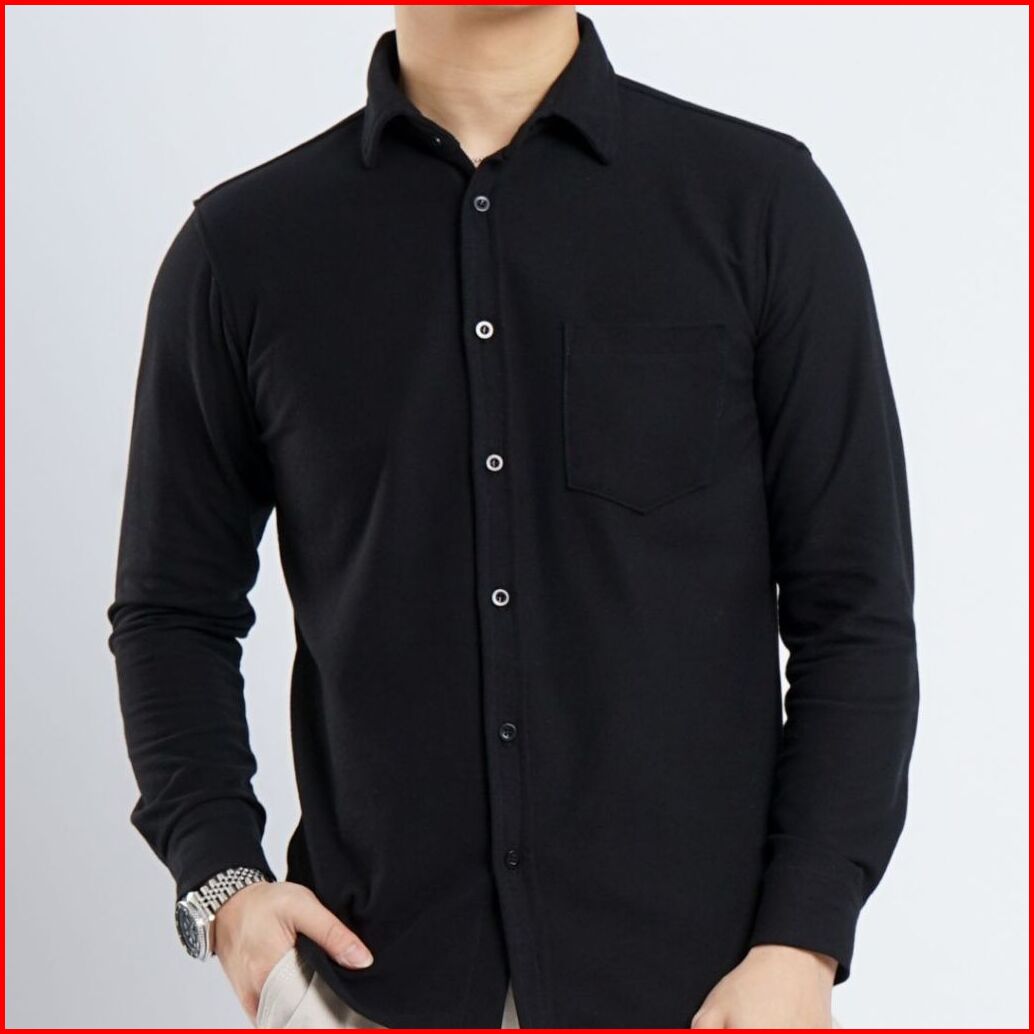 Yomen Kemeja Polos Pria Pique Lengan Panjang Mustard