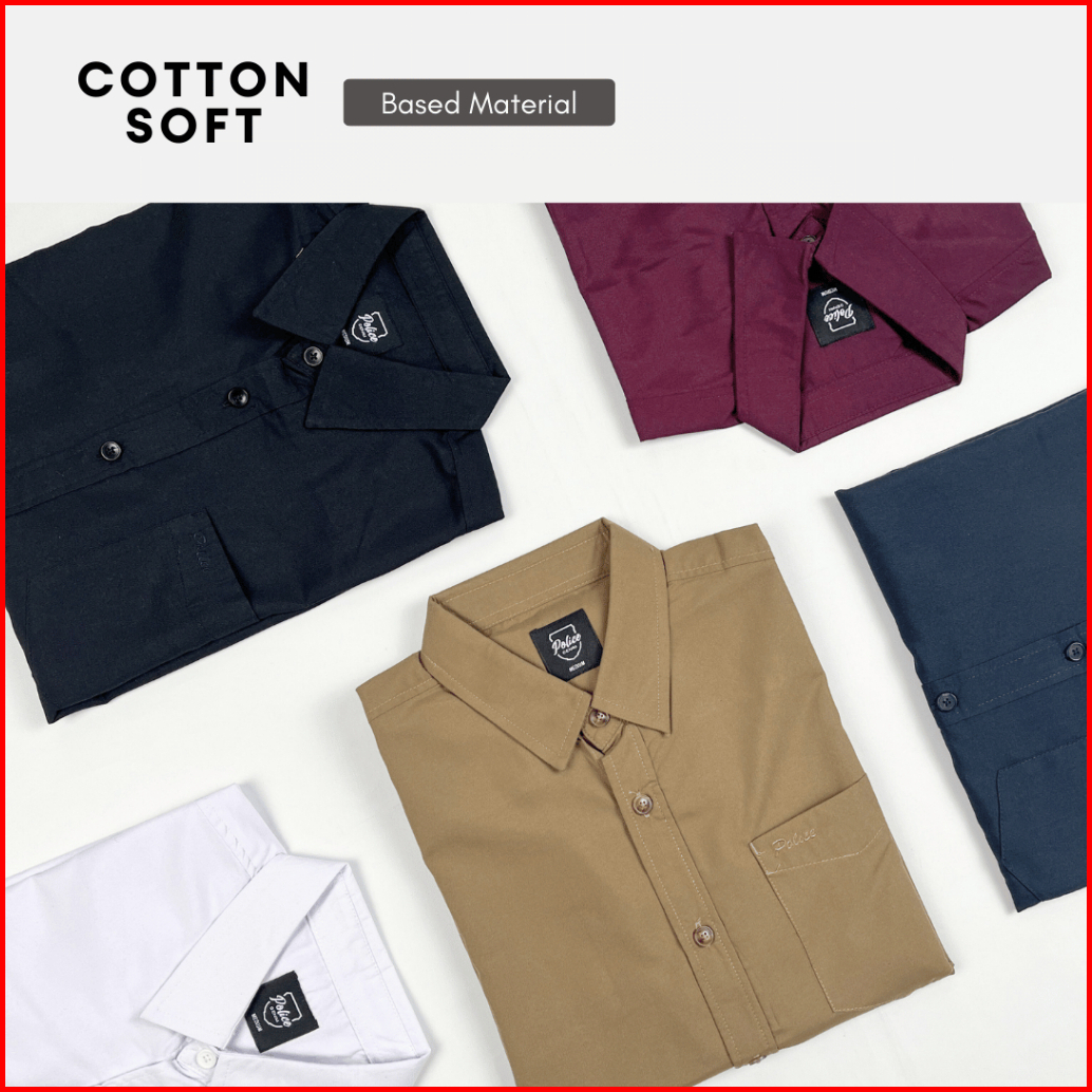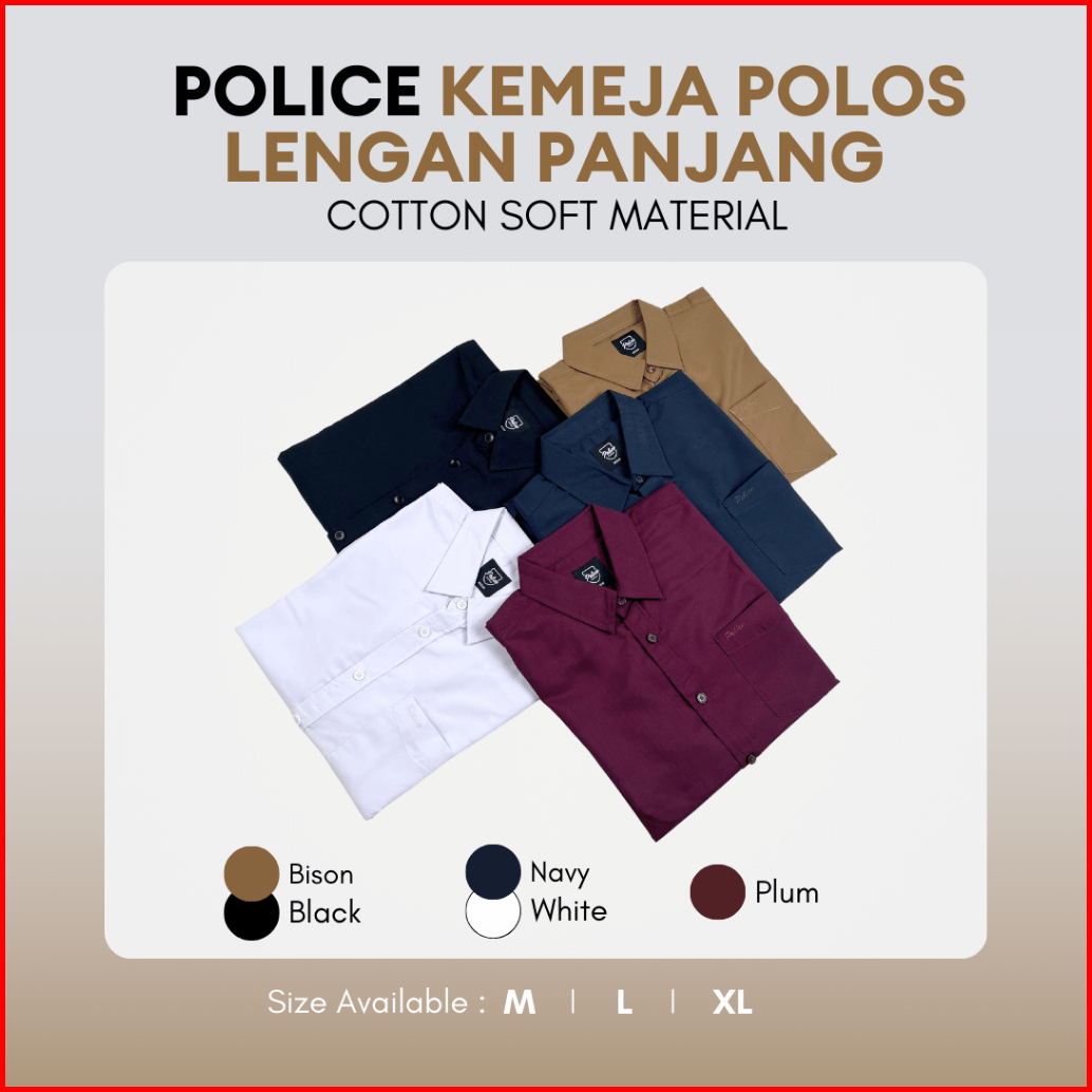 Police Kemeja Polos Basic Cotton Soft Regular Fit Lengan Panjang Pria