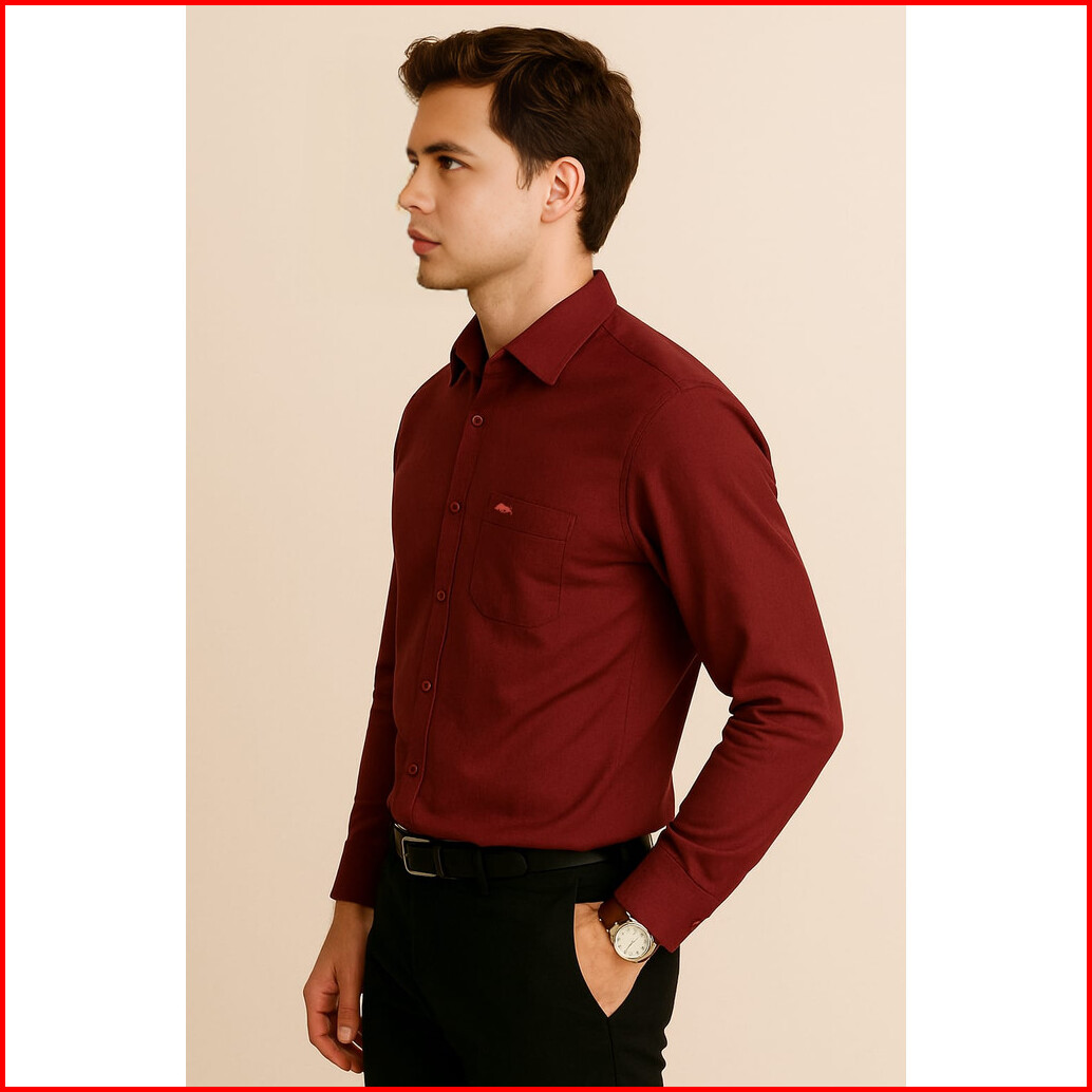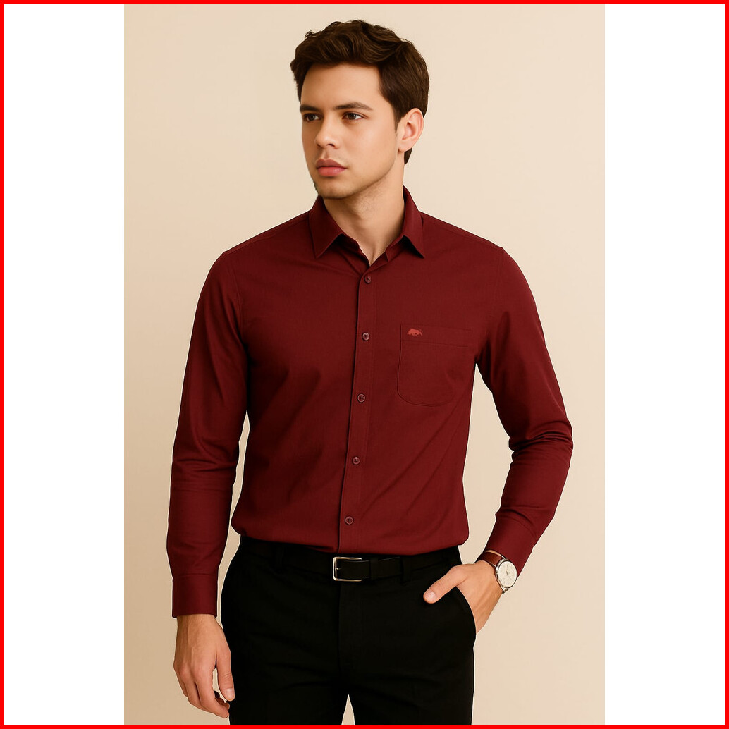 Ricardo Kemeja Pria Polos Merah Maroon Lengan Panjang 32235