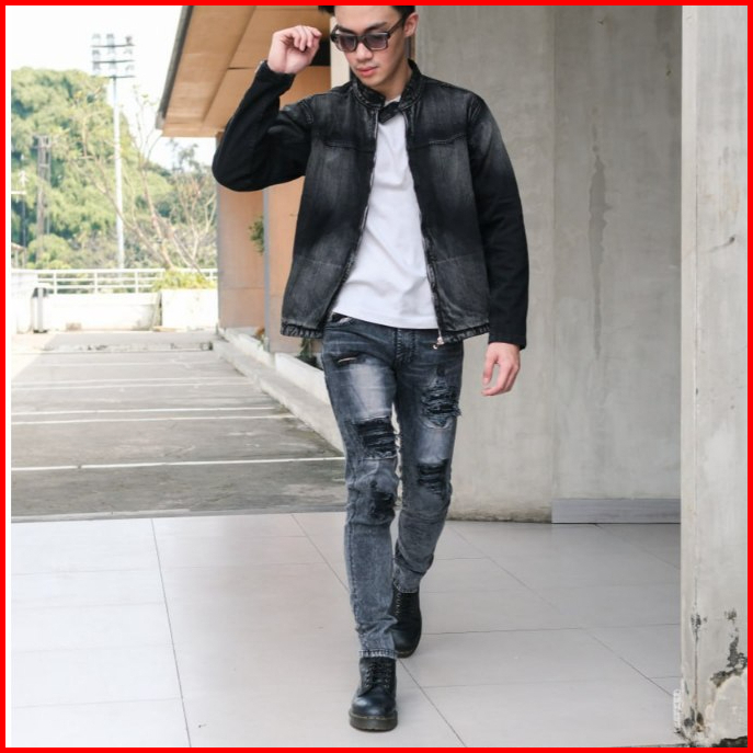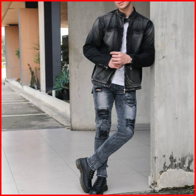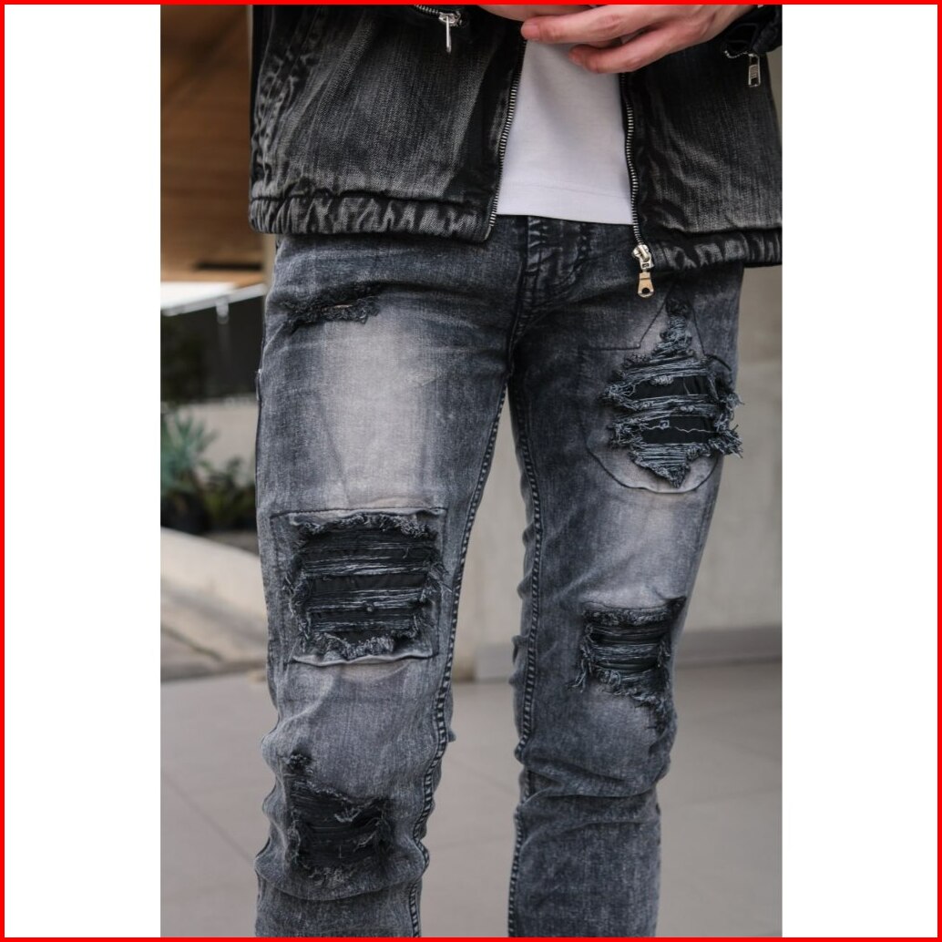 Weird Jeans - Chairos Black - Celana Panjang Jeans Pria Slim Fit Strech Sobek Ripped