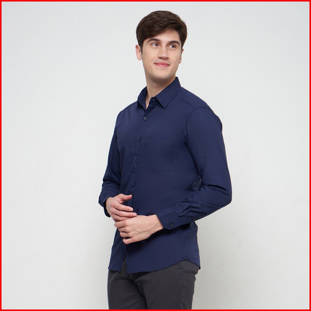 Kemeja Polos Kemeja Formal Pria Atasan Pria Lengan Panjang Navy Olr129