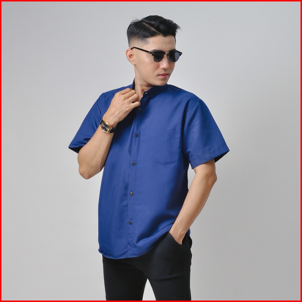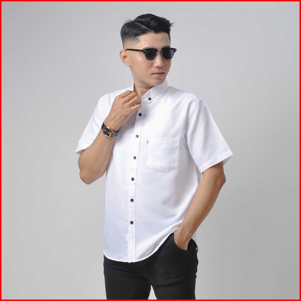 Nzl - Kemeja Polos Katun Kerja Kantor Formal Lengan Pendek Pria