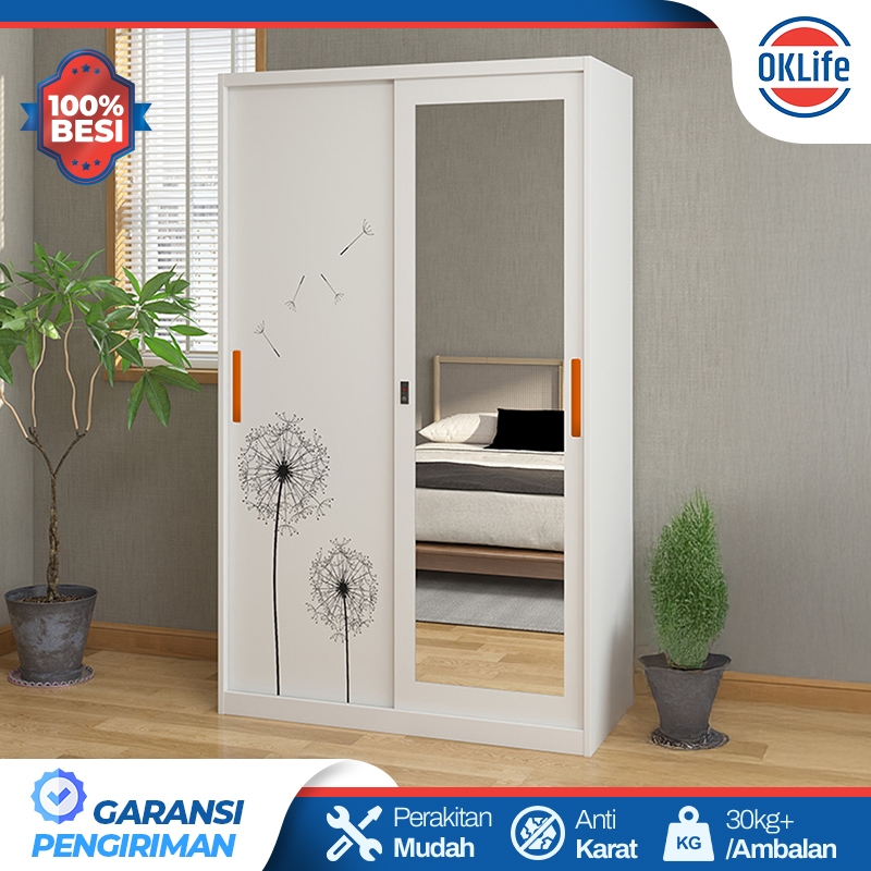 LEMARI BESI SLIDING 2 PINTU LEMARI BESI PAKAIAN LEMARI BAJU MINIMALIS FULL MOTIF & FULL