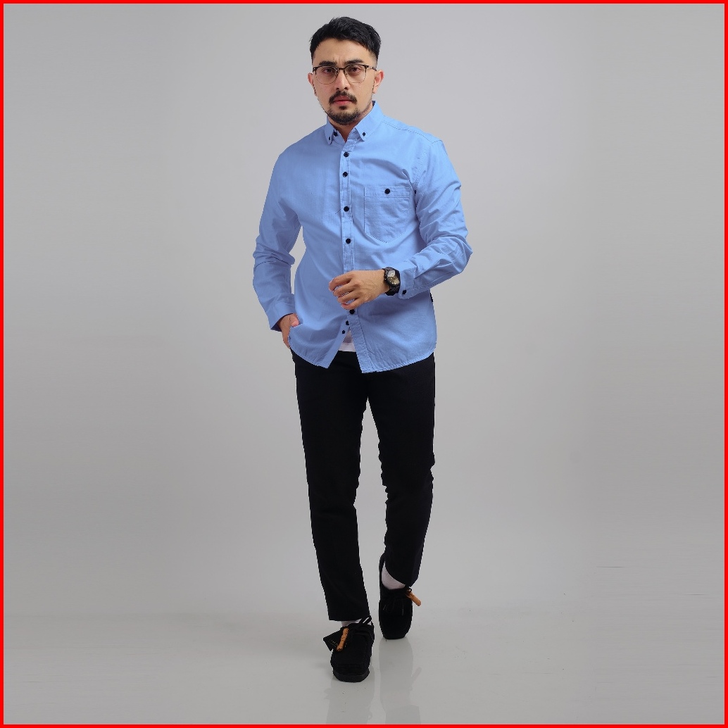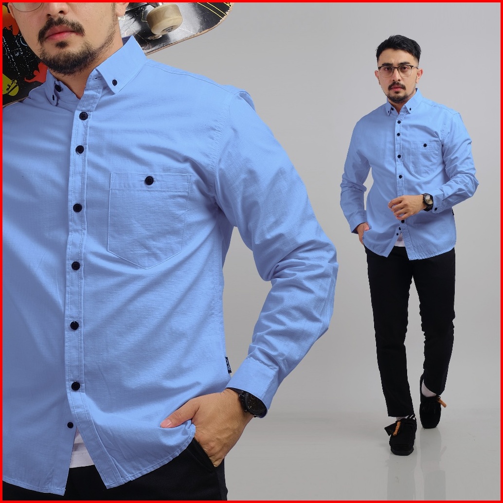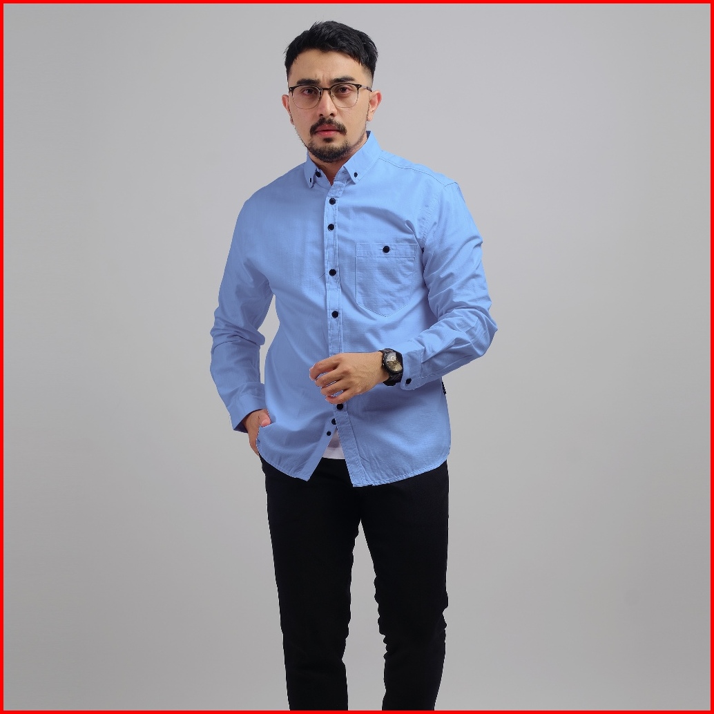 Dgm Kemeja Pria Basic Polos Lengan Panjang Blue Kemeja Polos Kemeja 1035