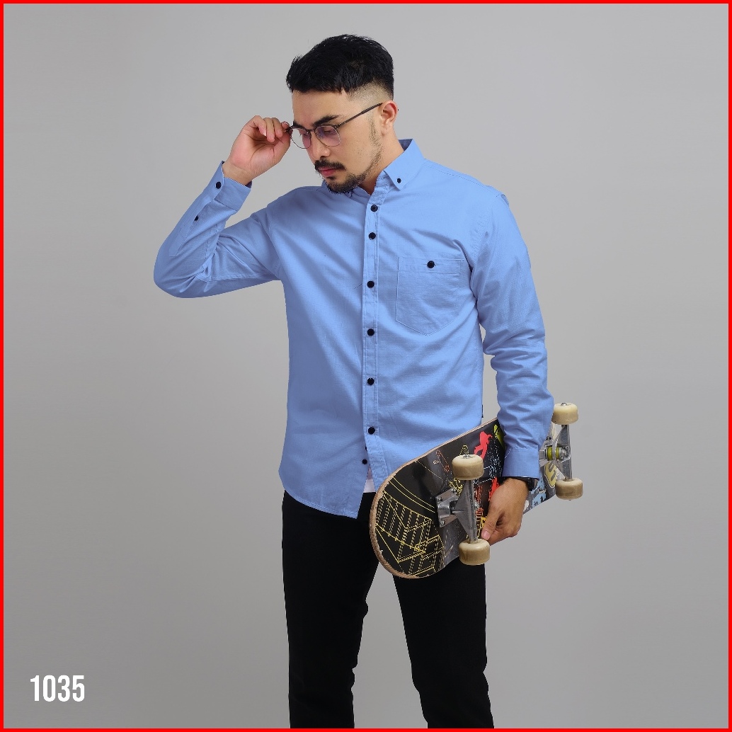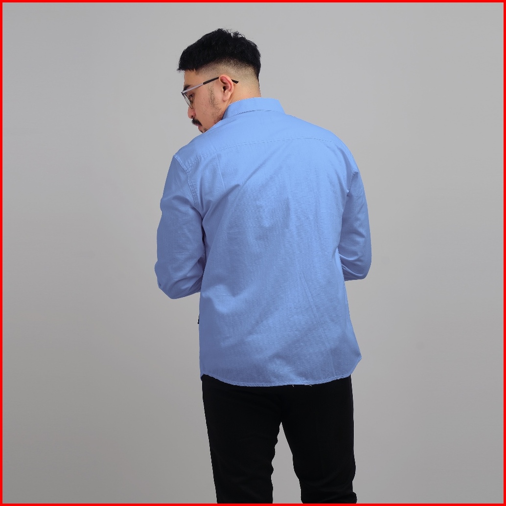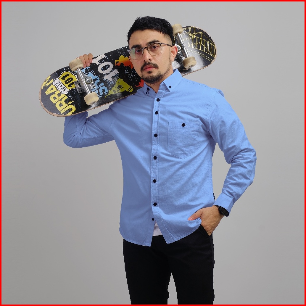 Dgm Kemeja Pria Basic Polos Lengan Panjang Blue Kemeja Polos Kemeja 1035