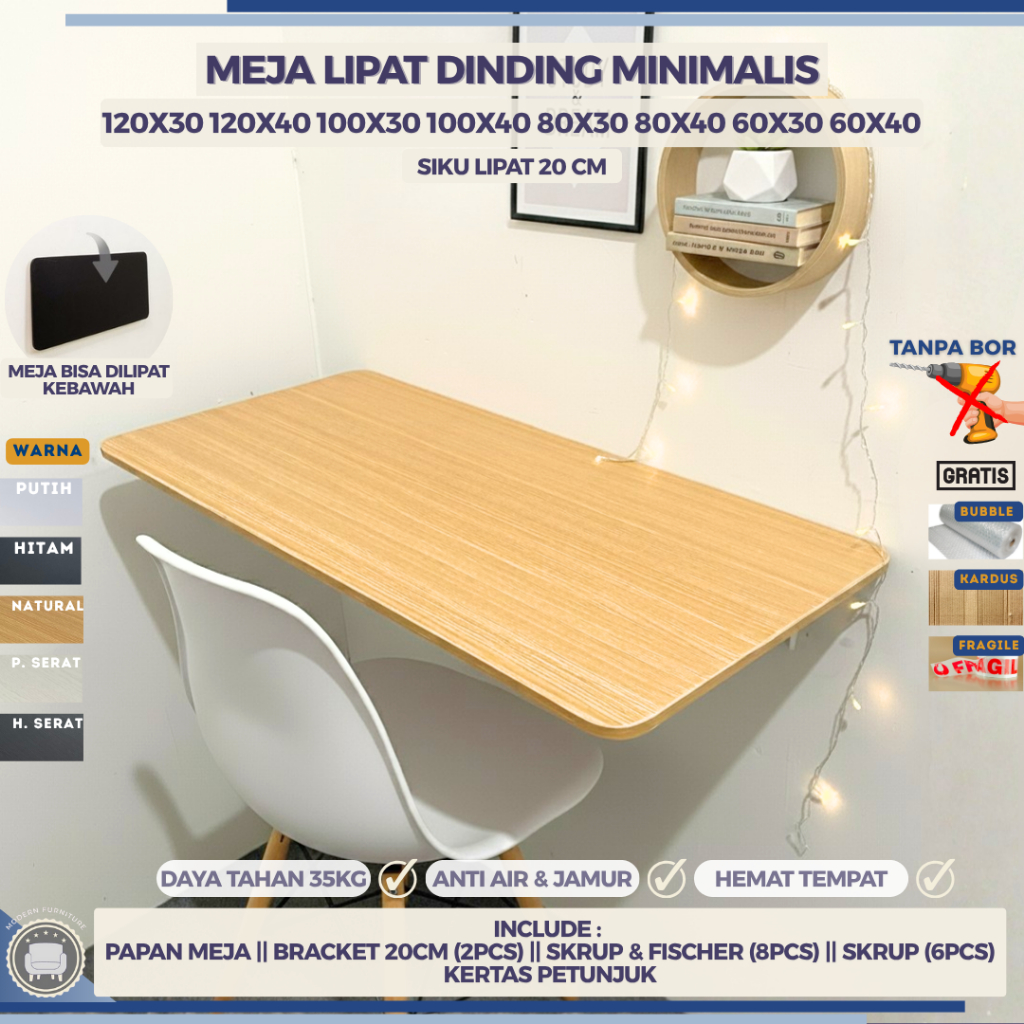 MEJA LIPAT DINDING 100X40 100X30 80X40 80X30 60X40 60X30 MEJA SATU SET TANPA BOR MEJA KOMPUTER MEJA BELAJAR MEJA BACA