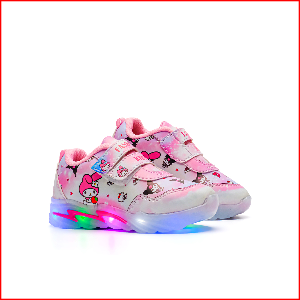 Sepatu Sneakres Anak Perempuan Dengan Lampu Led Model Karakter Kuromi Gradasi 1-6 Tahun