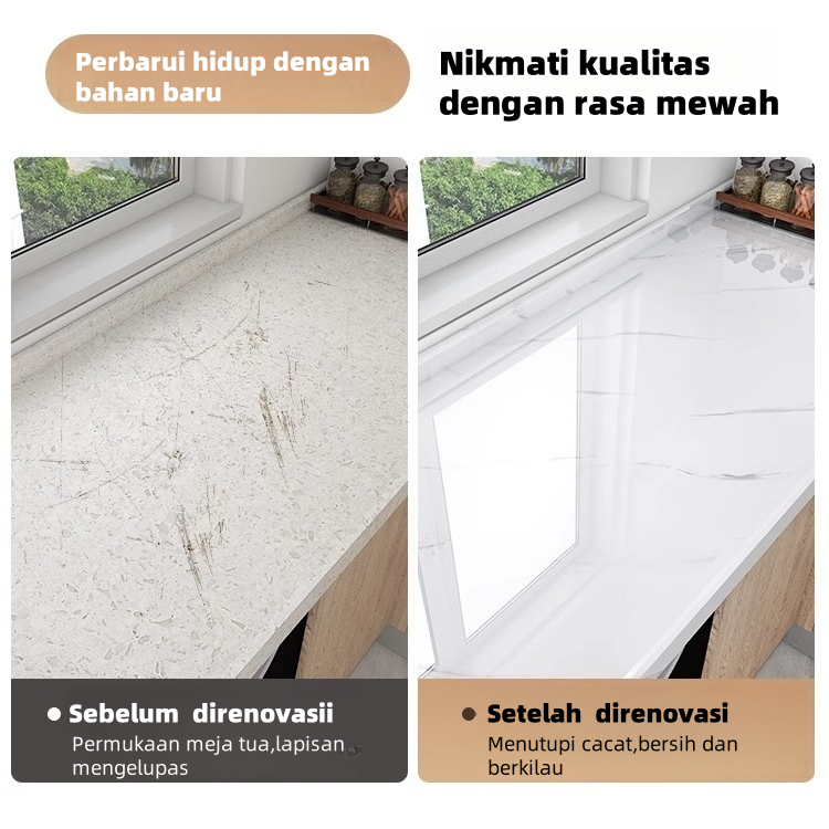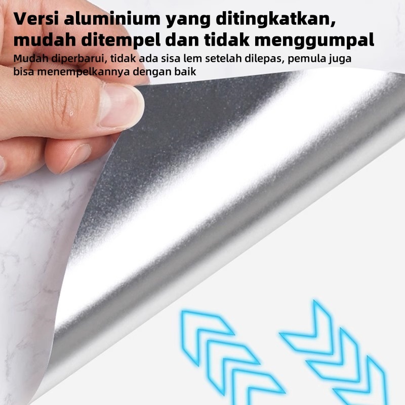 Dinding dapur stiker bahan alumunium foil 6 meter X 60 cm motif marmer warna putih garis abu2