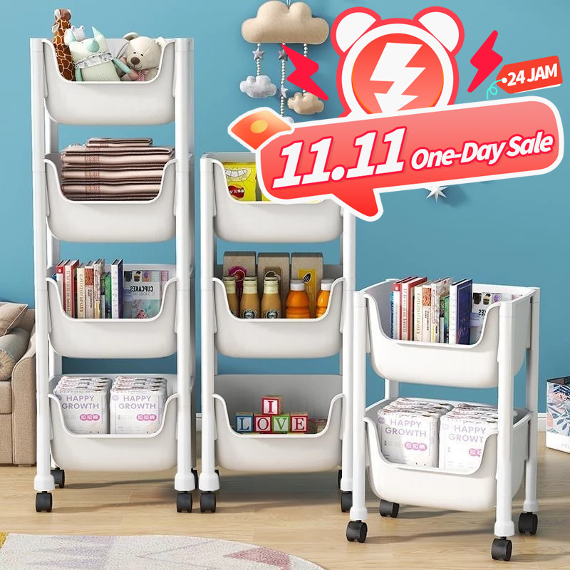Roxart Rak Susun Serbaguna 3-5 Tingkat Rak Kamar Mandi Bahan Plastik Portable | Rak Dapur Troli | Rak Roda Buku Mainan Penyimpanan