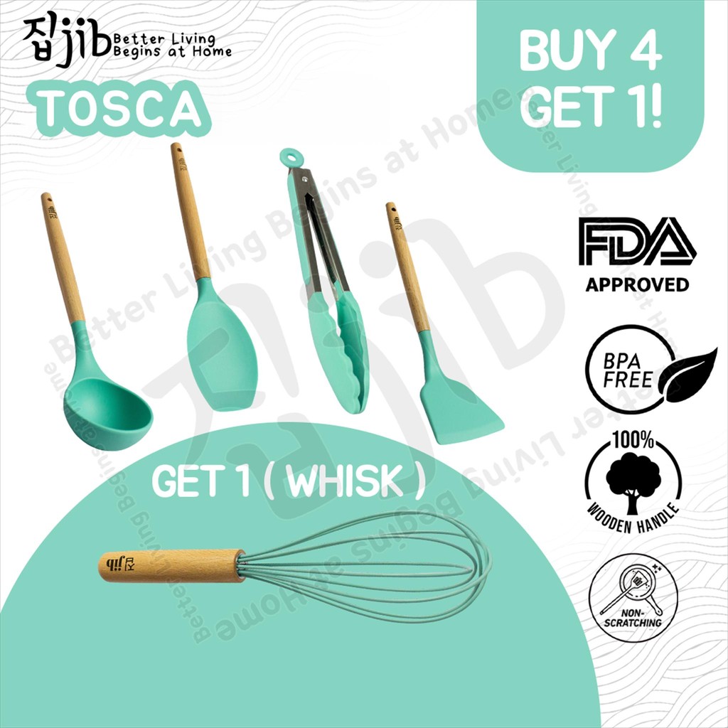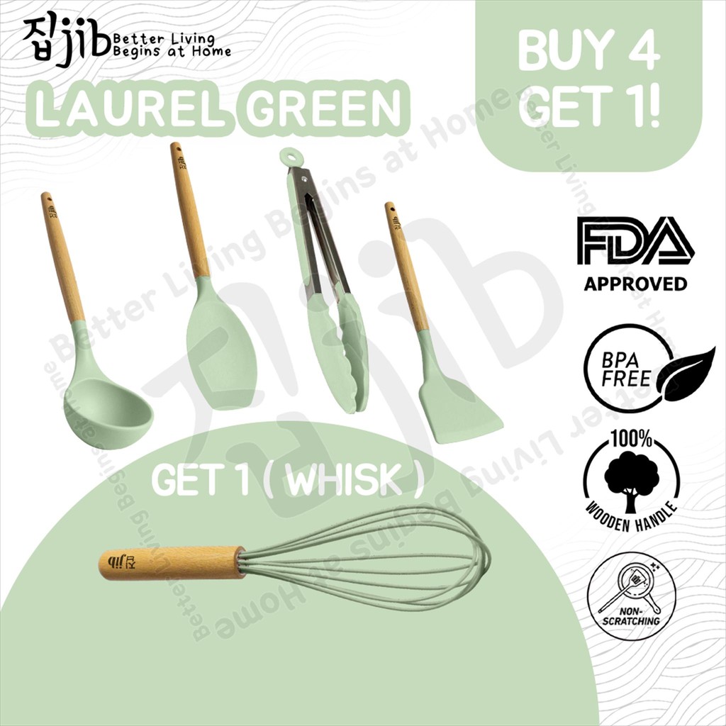 JIB Utensil Silicone Buy 4 Get 1 / Bundle Utensil Silikon / Sutil Silikon Tahan Panas Gagang Kayu / Kitchenware