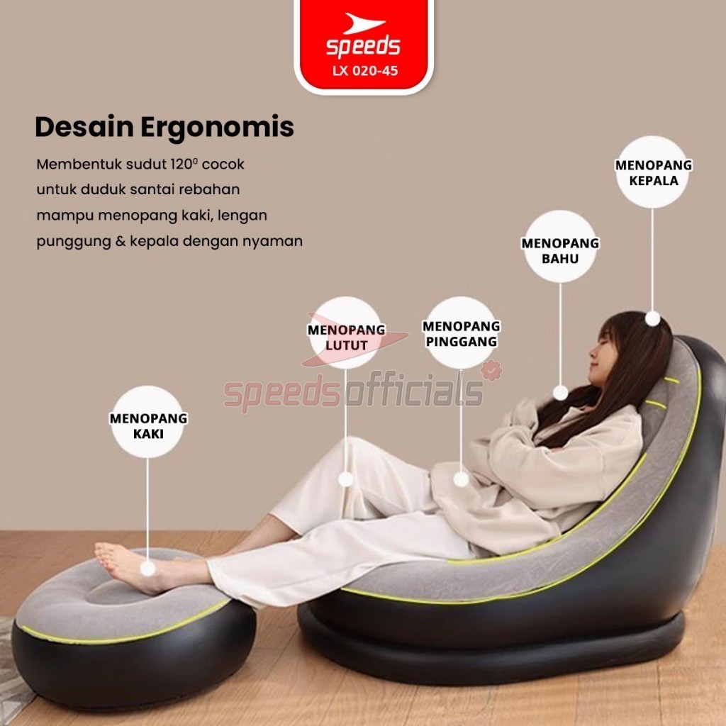SPEEDS Sofa Angin Beanbag Squishy Jumbo Inflatable Sofa + Stool Tiup Lazy Bag Outdoor Indoor Sofa Malas Tiup 020-45