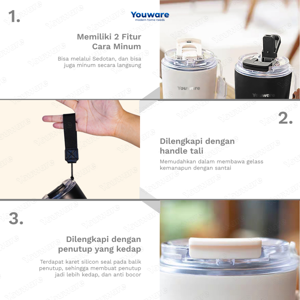 Youware - Harleen Botol Minum Tumbler Kopi Stainless Gelas Kopi Aesthetic Tahan Panas Dingin 450ml