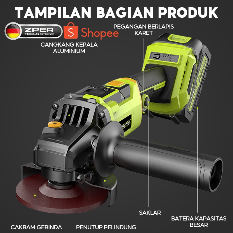 ZPER Mesin Gerinda Listrik Gerinda Sudut Tangan Untuk Memotong dan Poles Besi Angle Grinder