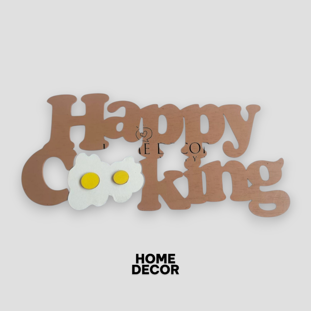 Pajangan Dinding Dapur TELUR Happy Cooking Motif Timbul Kayu Ukuran 30x13cm Laser Cutting