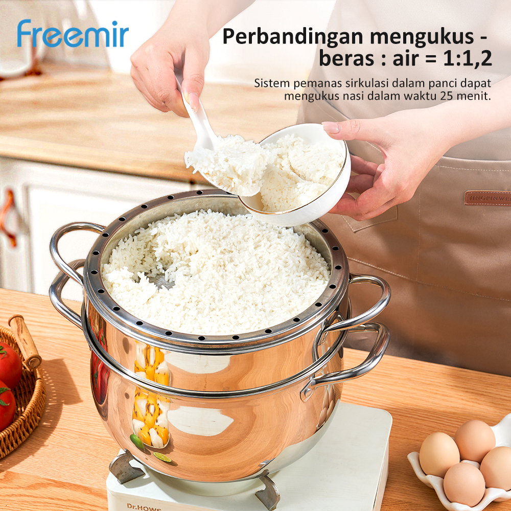 New 2025 freemir electric Panci Susun Kukus Nasi SUS 201 Stainless Steel 25cm Langseng + Steamer