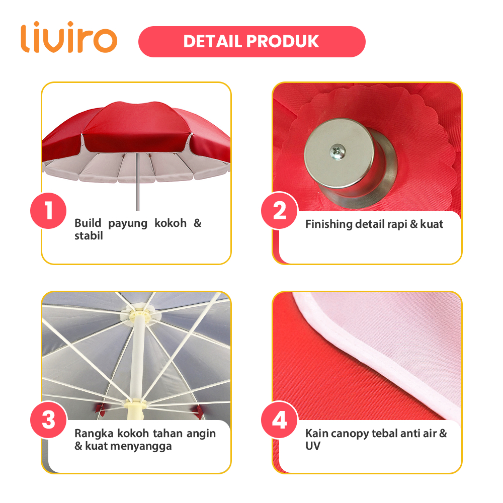 Liviro Payung Dagang Jumbo Besar Ukuran 280 CM Tiang Besi Kain Oxford Tebal Anti UV Berkualitas