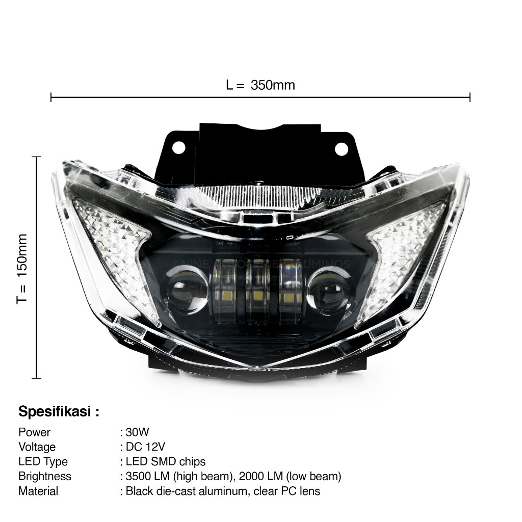 LUXIMOS Lampu Utama 30W Beat Headlight PNP Super Terang Deluxe Street DHB-01 - NINE AUTOSERIES