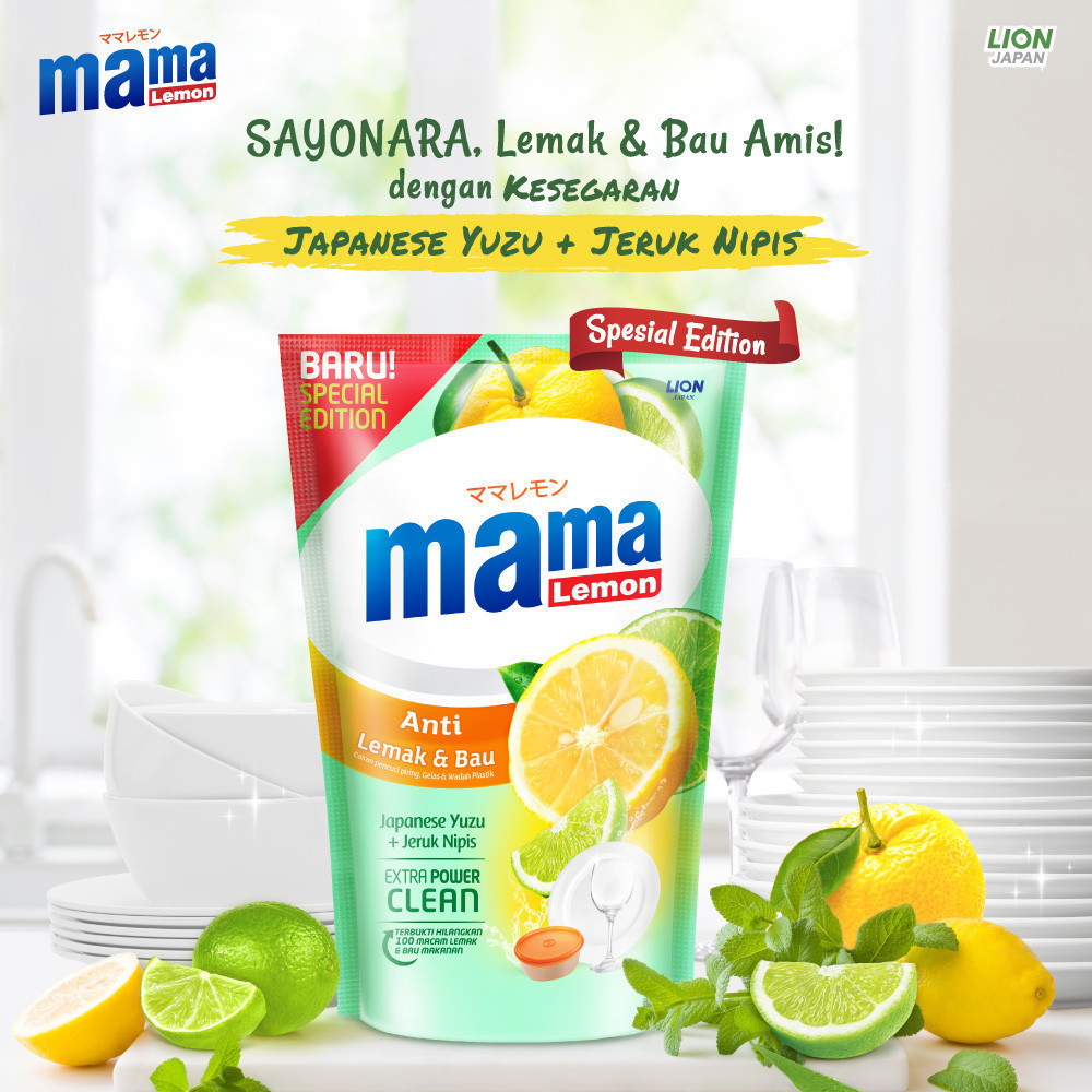 Mama Lemon Sabun Cuci Piring Yuzu & Jeruk Nipis Anti Lemak & Bau Pouch 680 ml x6
