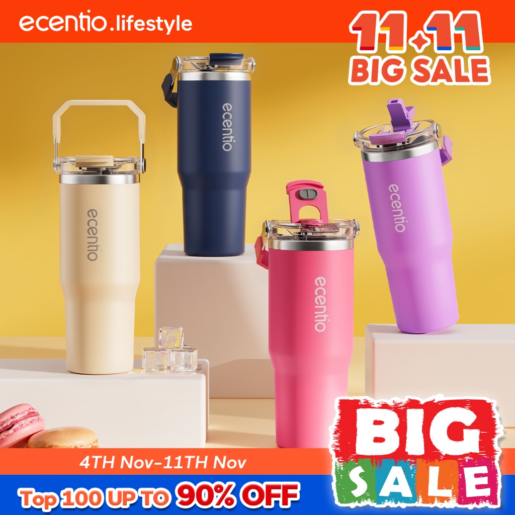ecentio tumbler 900ml tumbler tahan dingin 24 jam Mug kopi tahan panas dengan sedotan stainless steel 304 vacuum Insulated botol minum