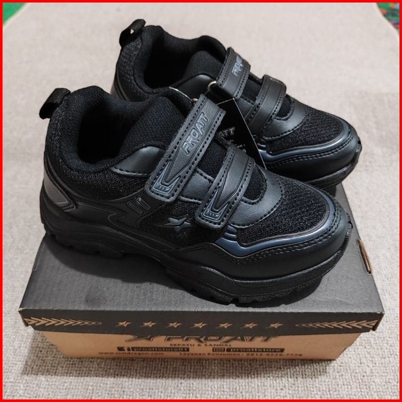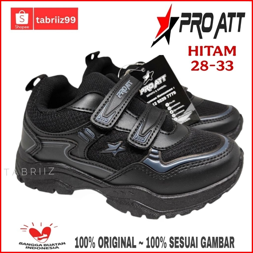 Baru Sepatu Pro Att Hitam Polos 28-33 Sepatu Anak Tk Paud Sd Sepatu Sekolah Anak Cowok Cewek Model Perekat - 100 Origina