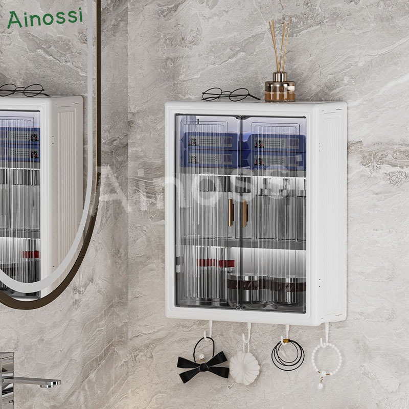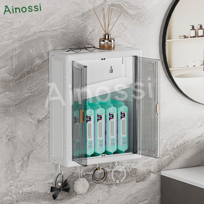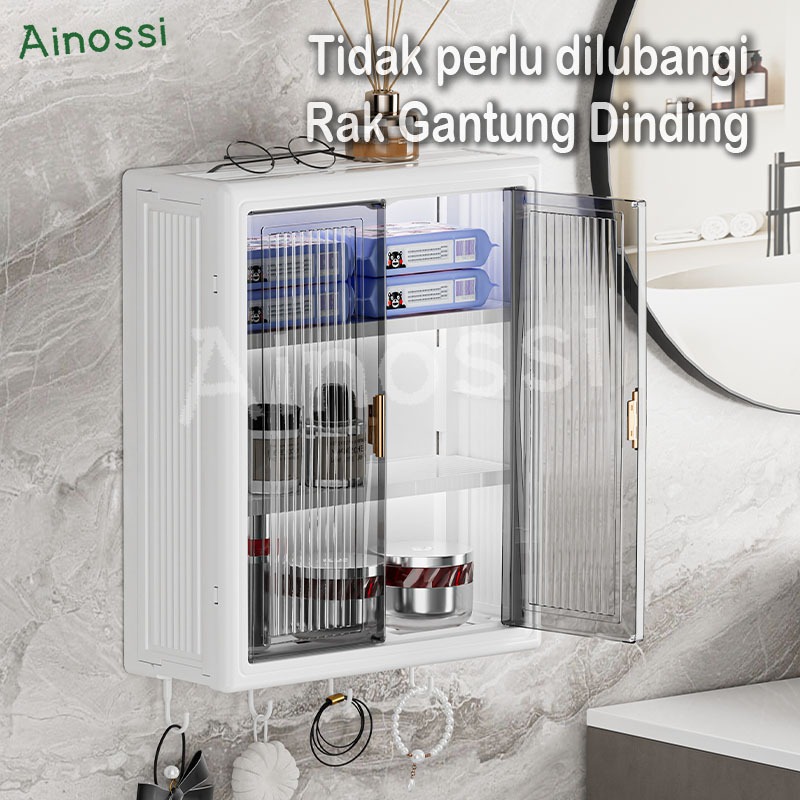 AINOSSI Lemari Plastik Kamar Mandi Dinding Aesthetic Kabinet Kamar Mandi Tertutup Kotak Rak Kamar Mandi Lemari penyimpanan dapur