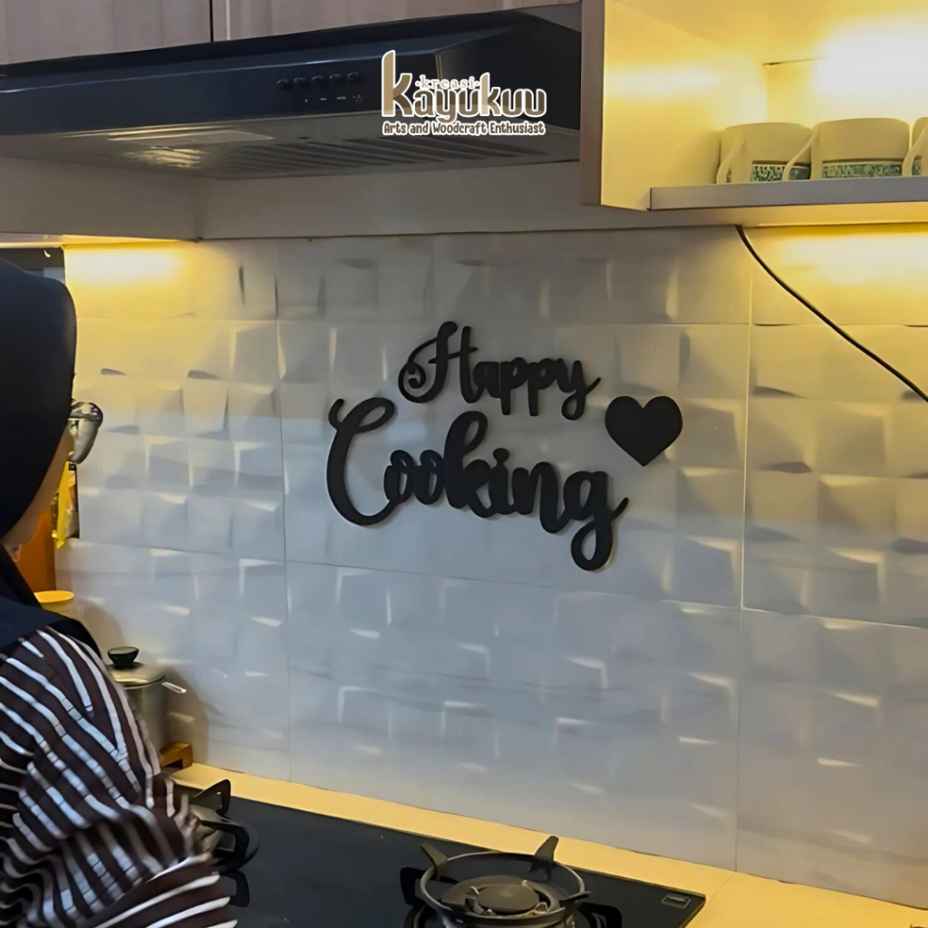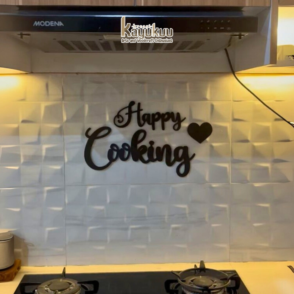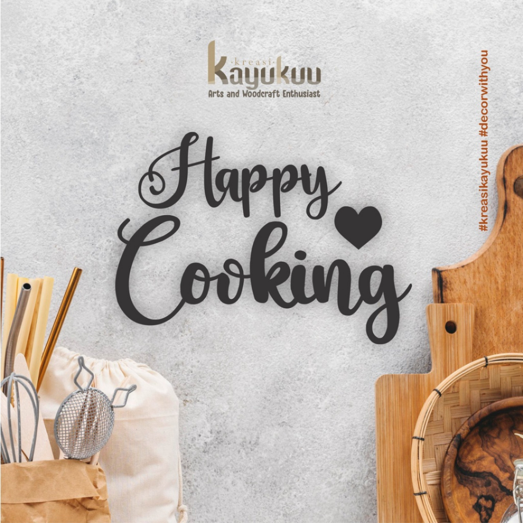 Kreasikayukuu Hiasan Dinding Dapur Happy Cooking Walldecor Rumah Estetik Bahan Plywood 5mm