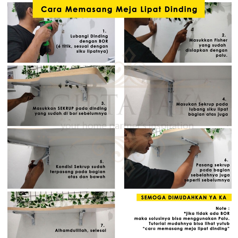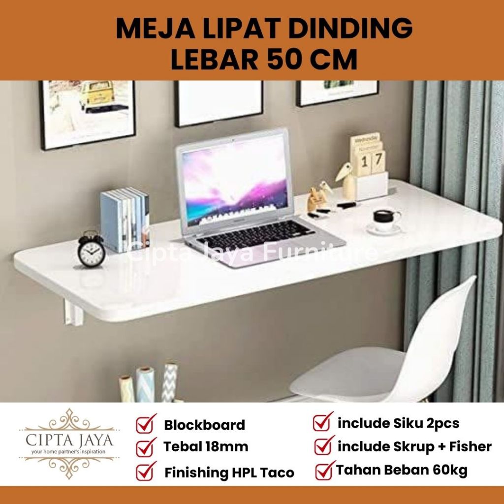Cipta Jaya Custom Meja Lipat Dinding Kayu Lebar 50 cm Sudah Termasuk Bricket Siku 30cm Multifungsi
