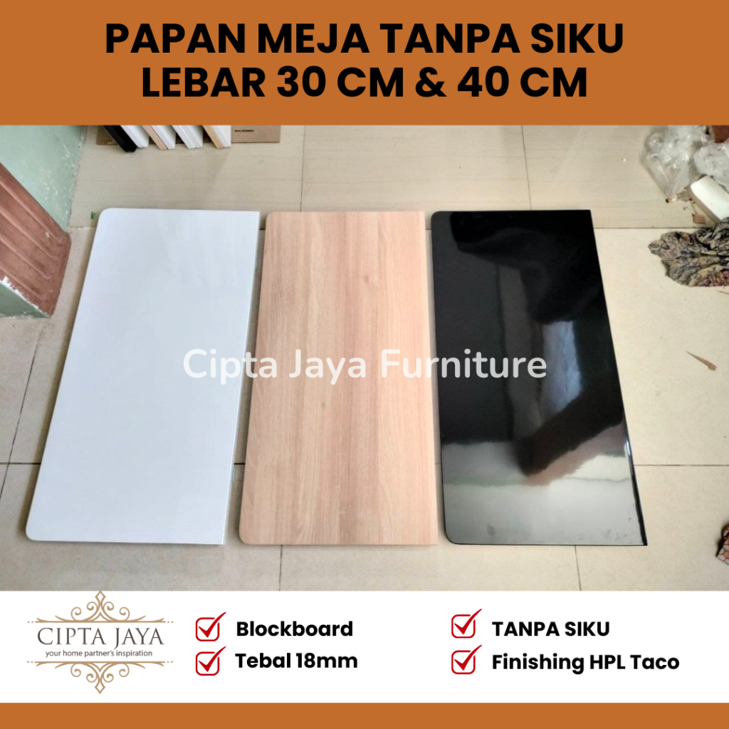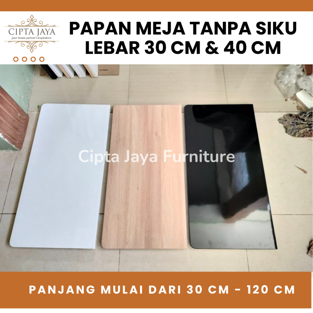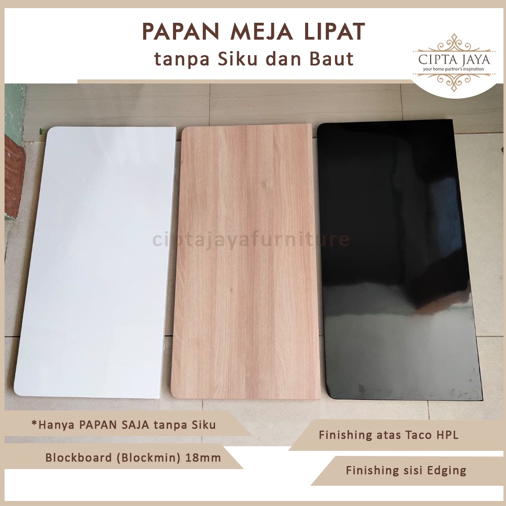 Cipta Jaya Papan Meja Lipat Lipet Papan Saja Tanpa Siku Engsel dan Tanpa Baut Lebar 30 cm dan Lebar 40 cm Putih Hitam Natural Kayu
