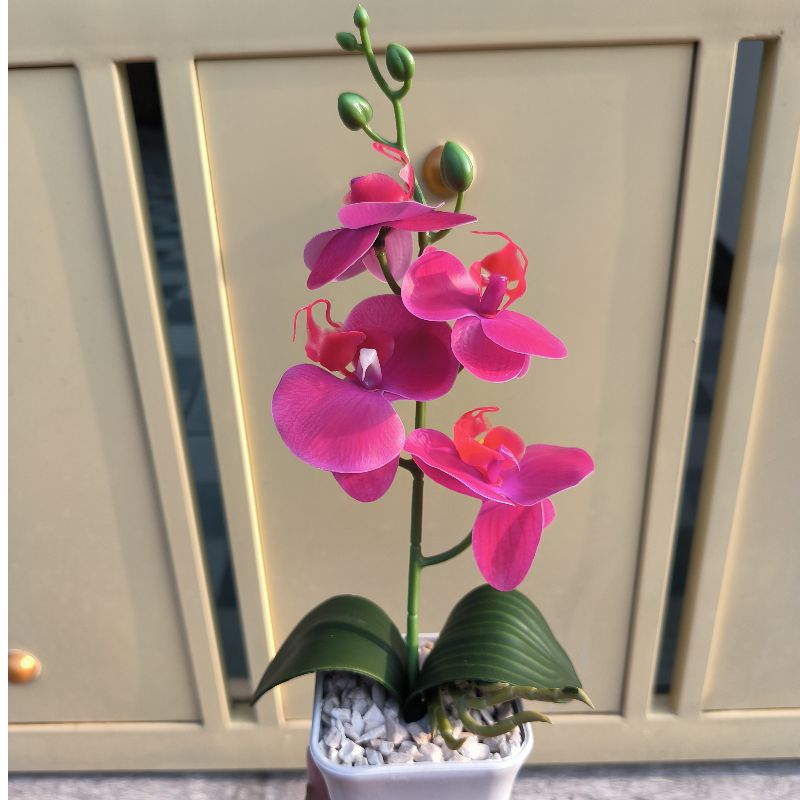 Anggrek Latex Kecil + Pot Kotak Bunga Artificial Sudah Rangkaian