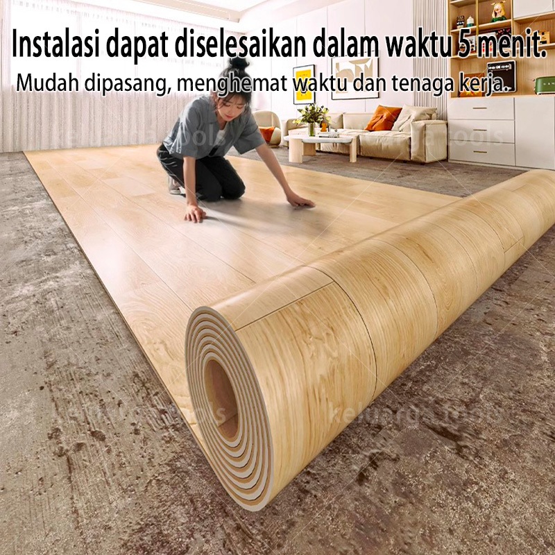 Reaim Karpet Lantai Vinyl Roll aesthetic Gulungan Motif Kayu 1Roll 20m² Tebal 1.5 mm Ukuran 2 x 10meter Decorasi Lantai