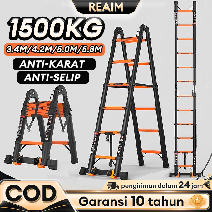 Reaim Tangga lipat aluminium Multifungsi teleskopik Portabel 2 3 4 5 6 meter Telescopic Ladder