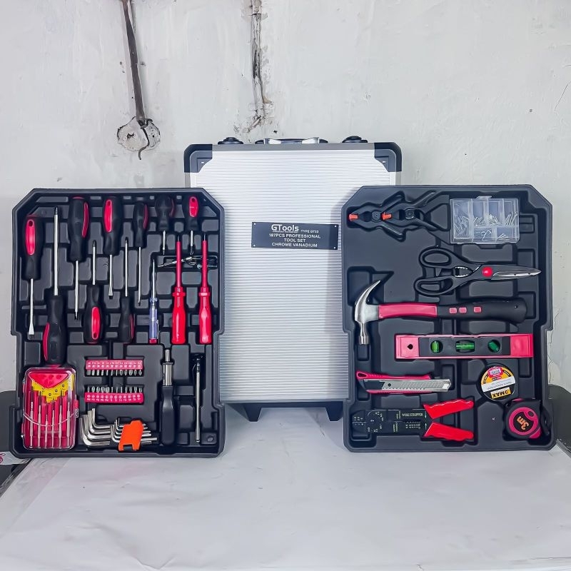 BIG PROMO GTOOLS EROPA TOOLKIT 187 PCS KUNCI SET LENGKAP BENGKEL MOTOR MOBIL TUKANG PROYEK BANGUNAN DLL TYPE GT22 FULLSET KOPER BY XAPR APR